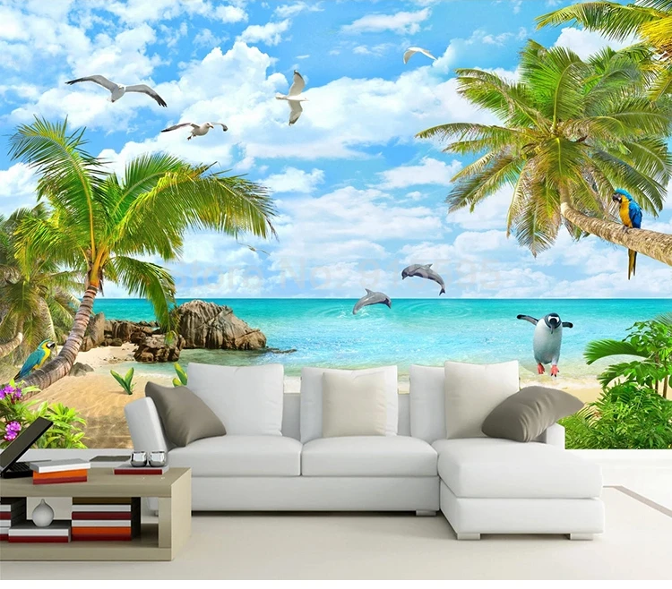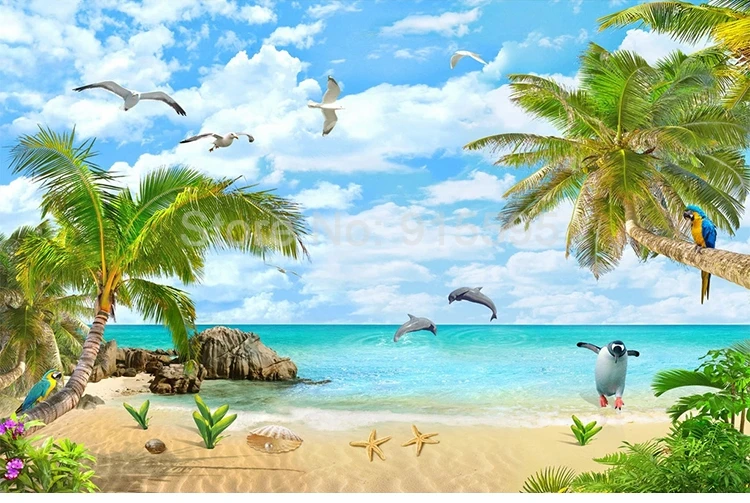 Морской пейзаж кокосовое дерево песчаный пляж 3D фото обои для гостиной спальни Декор водонепроницаемый самоклеющиеся клеющиеся Фотообои