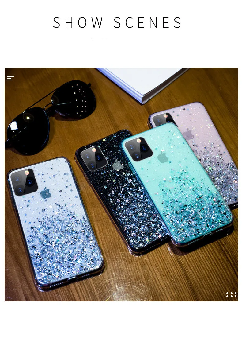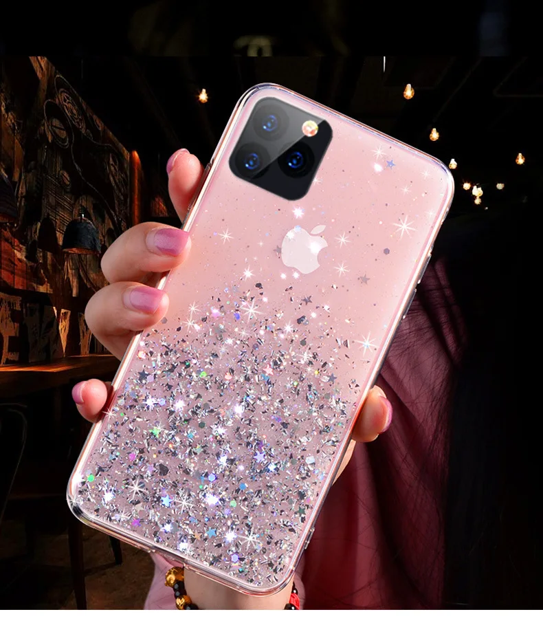 Блестящий чехол для телефона iPhone 11 Pro X XS Max XR SE 2020, мягкий силиконовый чехол для iPhone 7 8 6 6S Plus, прозрачный чехол