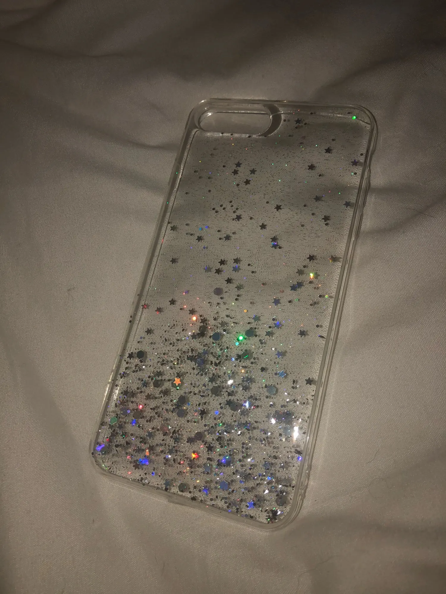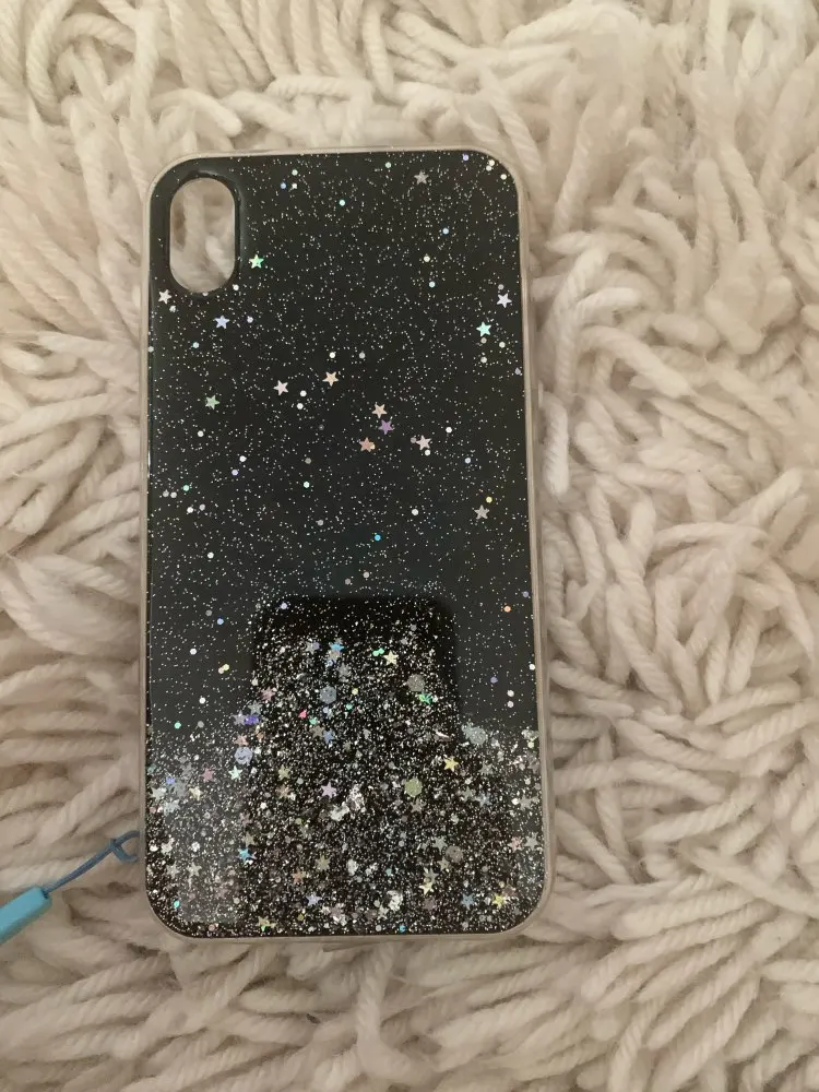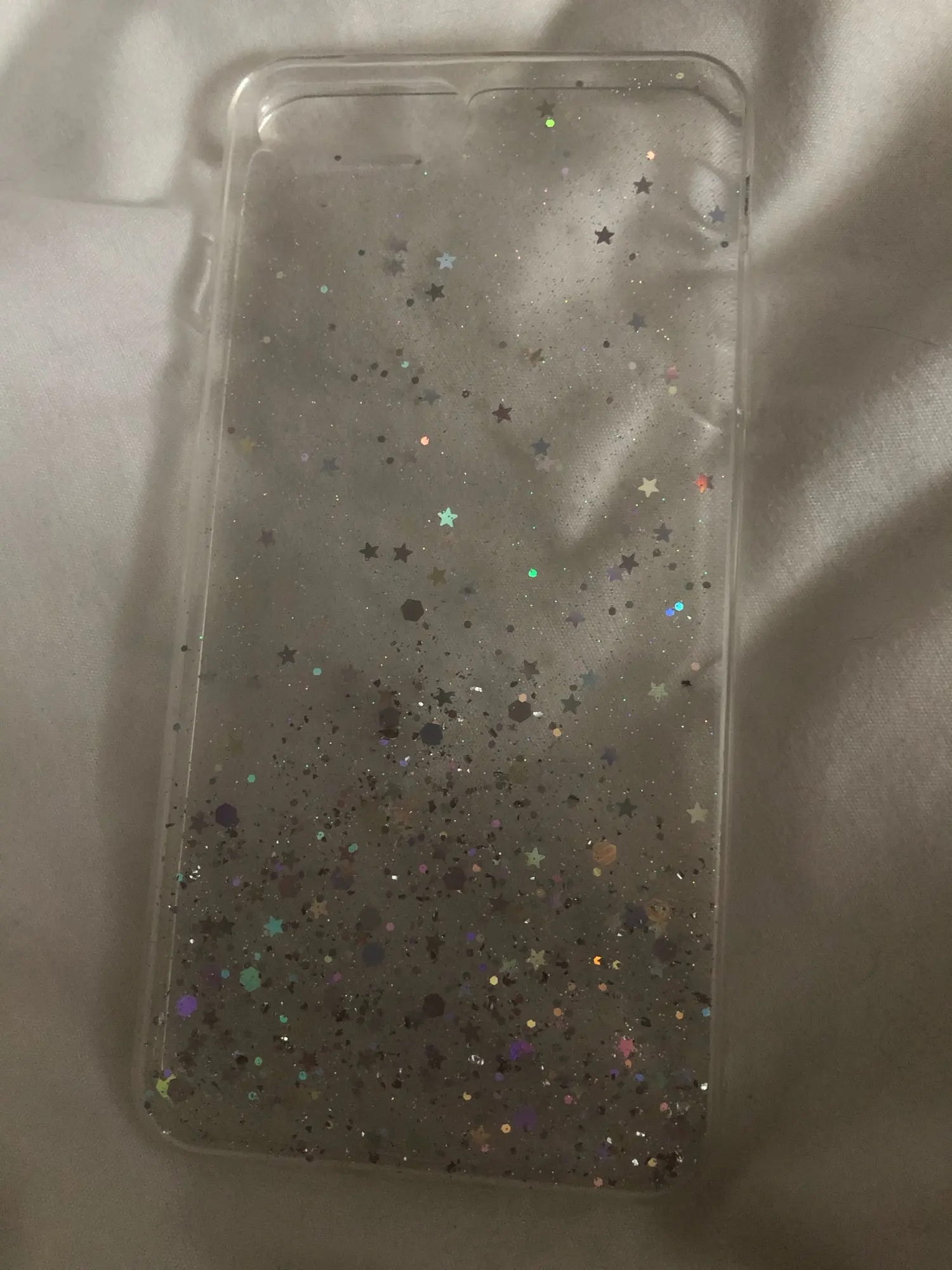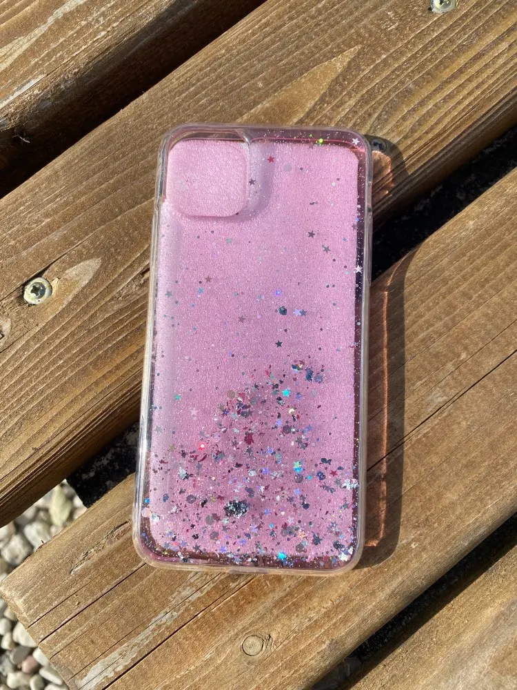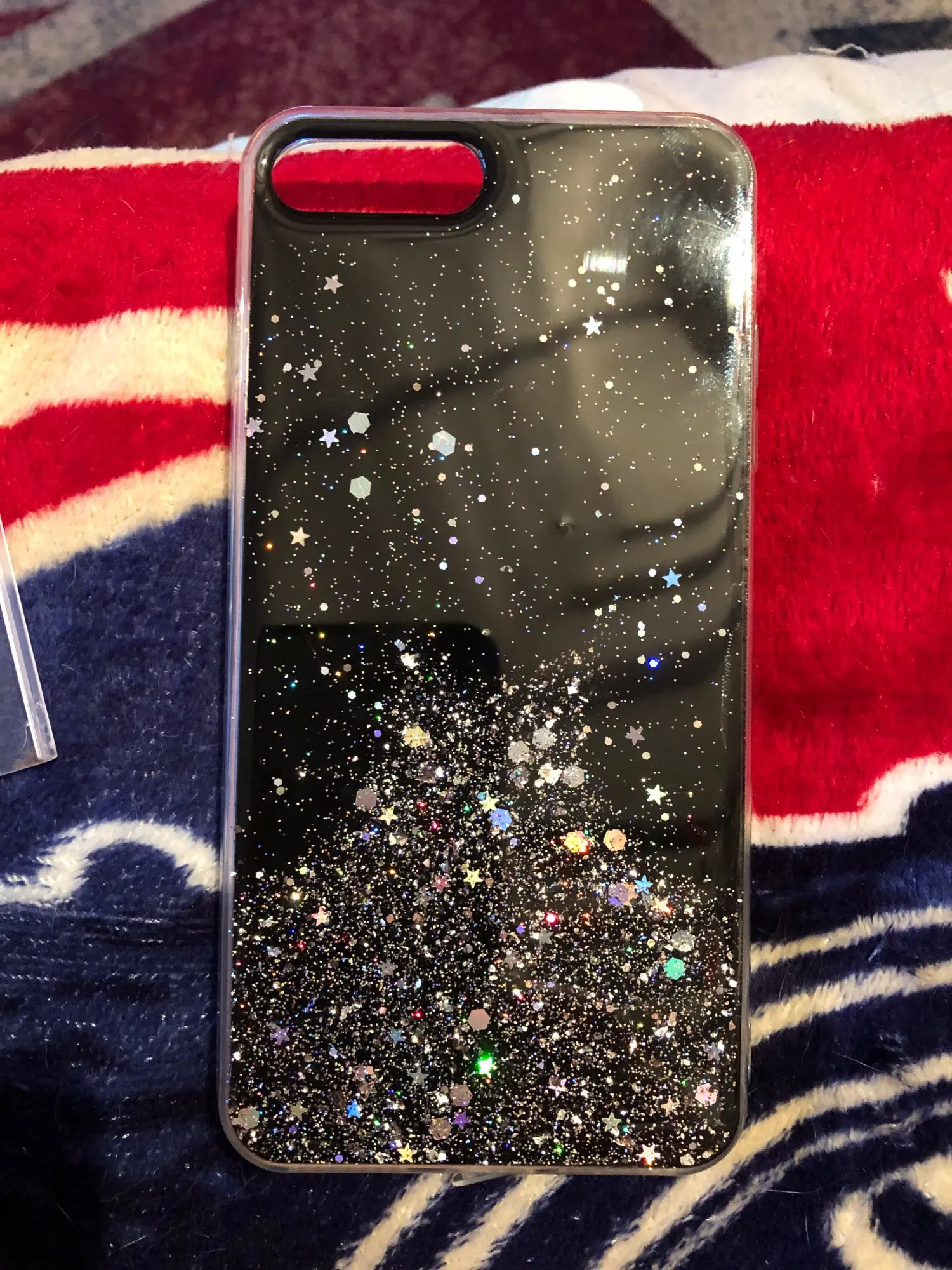 Снимаю балл за то, что чехол не соответствует картинке. На картинке есть логотип айфона, на чехле его нет. Просто чёрный не прозрачный чехол с блёстками. В целом довольно симпатичный. Пришел без изъянов.