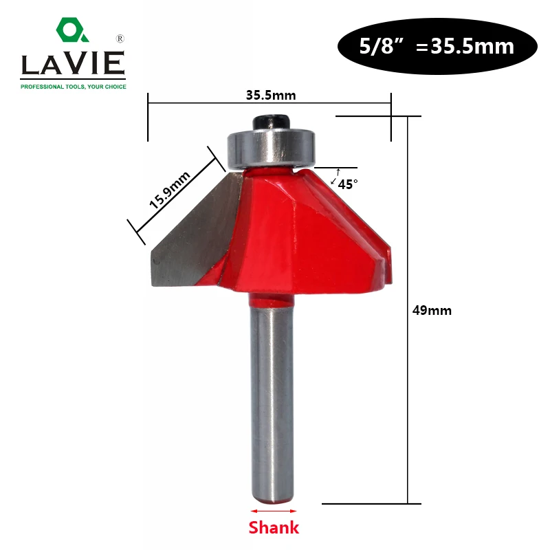 Фреза для фрезы по дереву, хвостовик 6 мм, 6,35 мм, 45 градусов, MC01130, 1 шт.