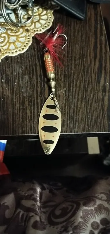 блесна качественная, лето отловил на желтые с красными и черными точками-окунь,щука.