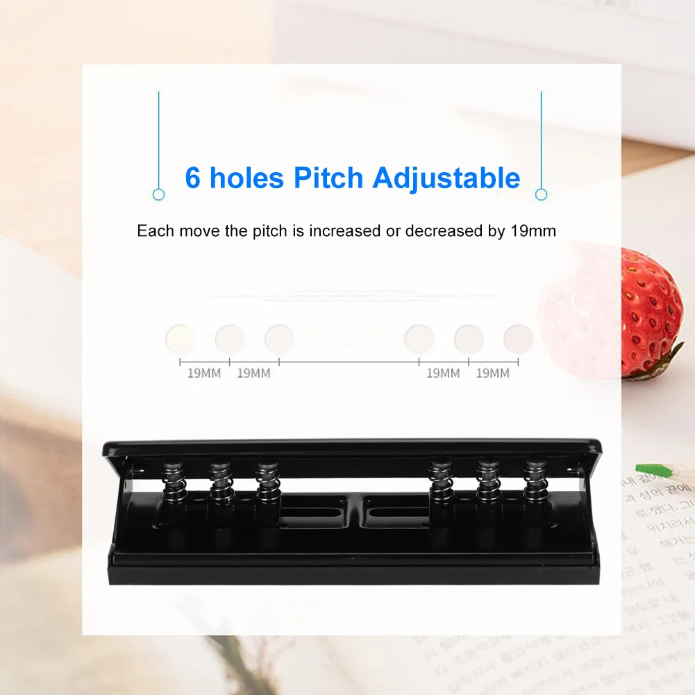 Ручной Дырокол с 6 отверстиями, 3 цвета, регулируемое расстояние, дырокол для бумаги, офисные школьные принадлежности