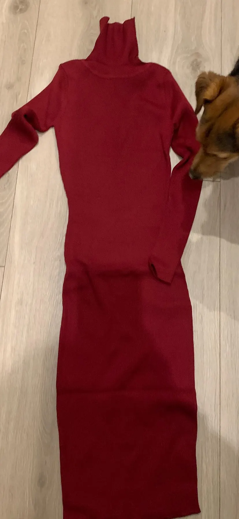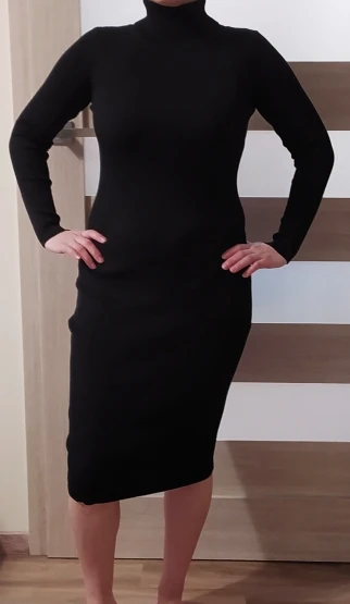 Очень вязаное платье, не тонкое, не имеет запаха, очень хорошее платье и длина руки (я 1,72 м). Доставка в Латвию была немного длиннее месяца.