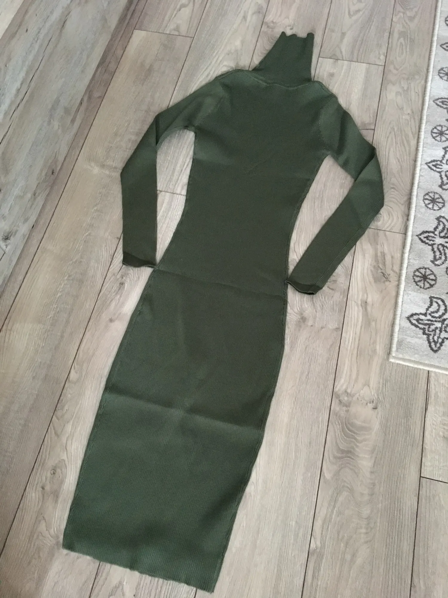 Мне очень нравится по качеству. Это платье-лапша по фигуре. Я редко ношу такие вещи, но хотела найти себе платье на осенне-зимний сезон. Мой рост 1,69. Рукав примерно 7/8. В моем случае платье прикрывает колено. Я давно присматривала что-то такое в магазинах, но нигде не могла найти нужный мне цвет. Это цвет летней травы: не слишком бледный, не слишком яркий. И по качеству это платье выше всяких похвал: садится по фигуре, не просвечивает, все швы ровные. Мне очень нравится эта покупка. Очень здорово смотрится и с грубыми ботинками, и с каблучками. Поверх можно надеть жакет, пальто, даже худи можно набросить или рубашку-бомбер, которая сейчас в тренде. Можно носить с кроссовками, с чем угодно - настолько оно универсальное.