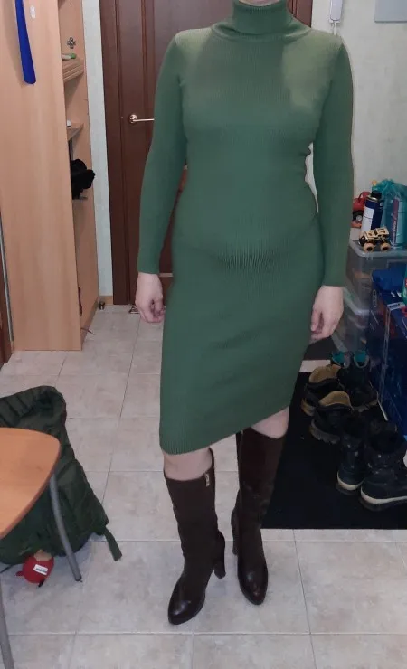 Платье очень понравилось. Вязка плотная, без запаха, цвет оливы. Благодарю продавца за качественный товар! Рекомендую продавца и магазин. 5+++++