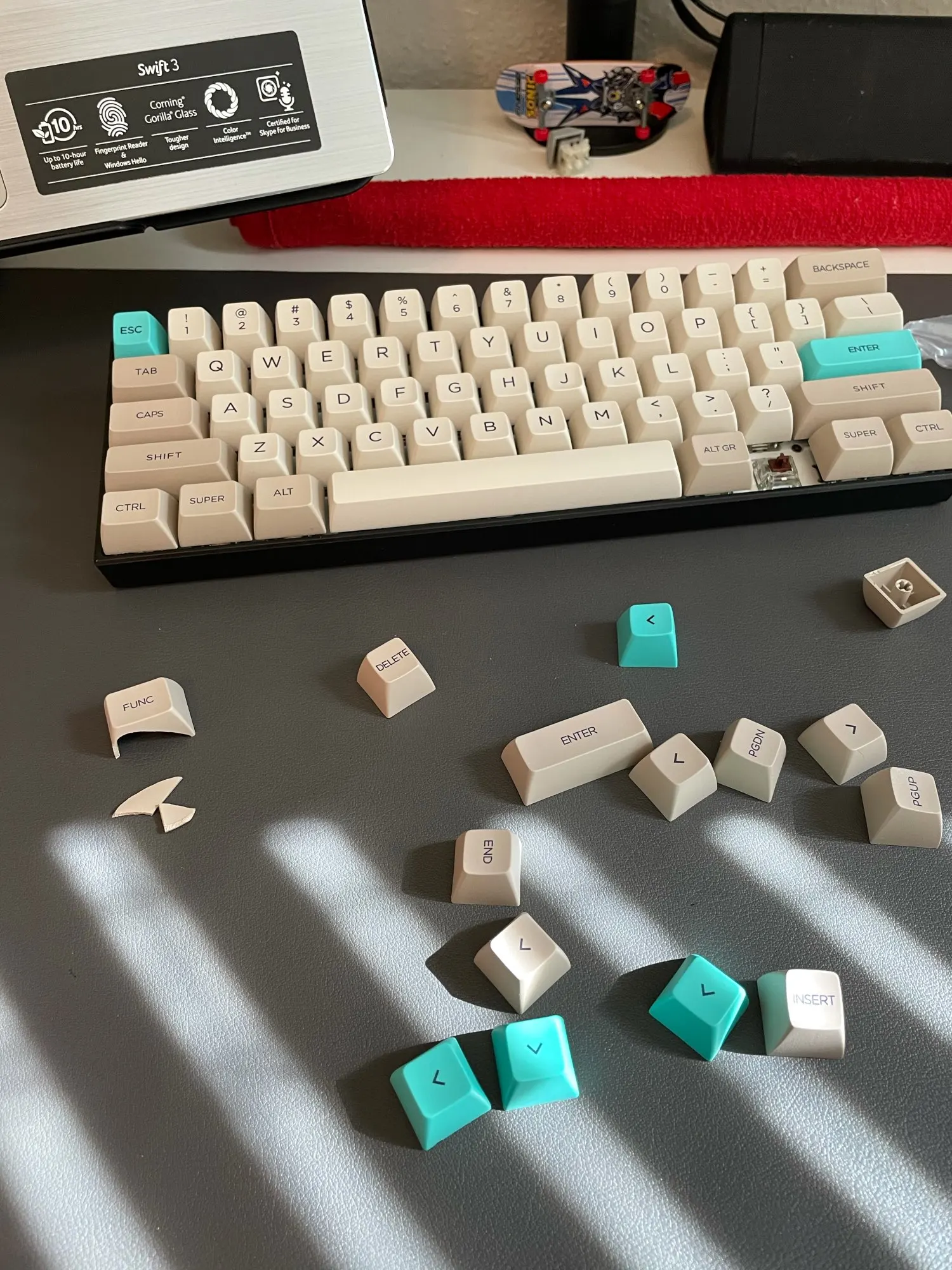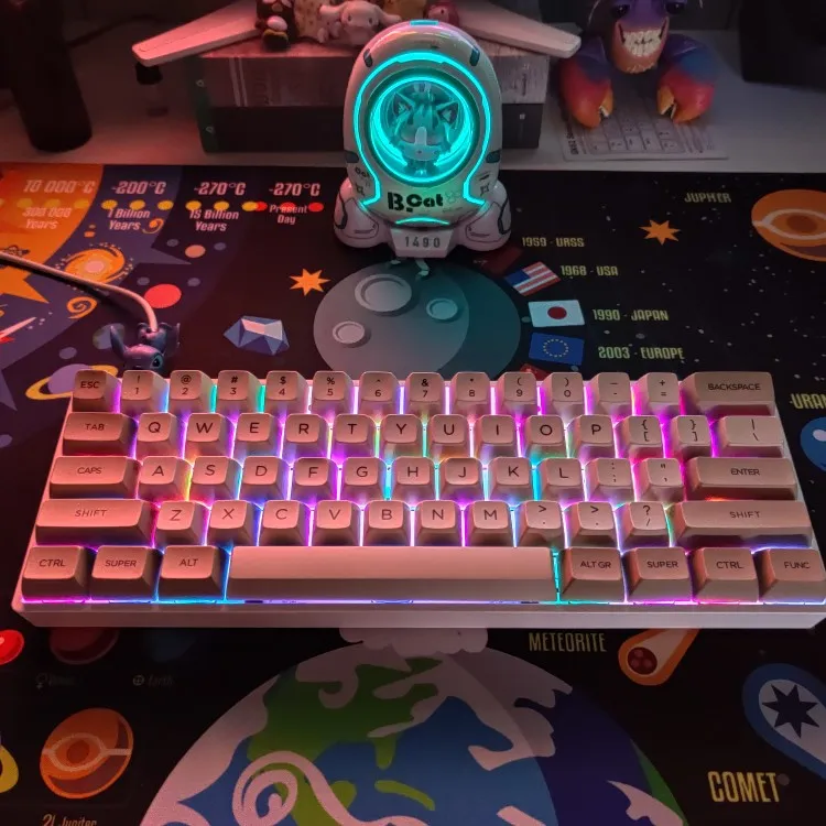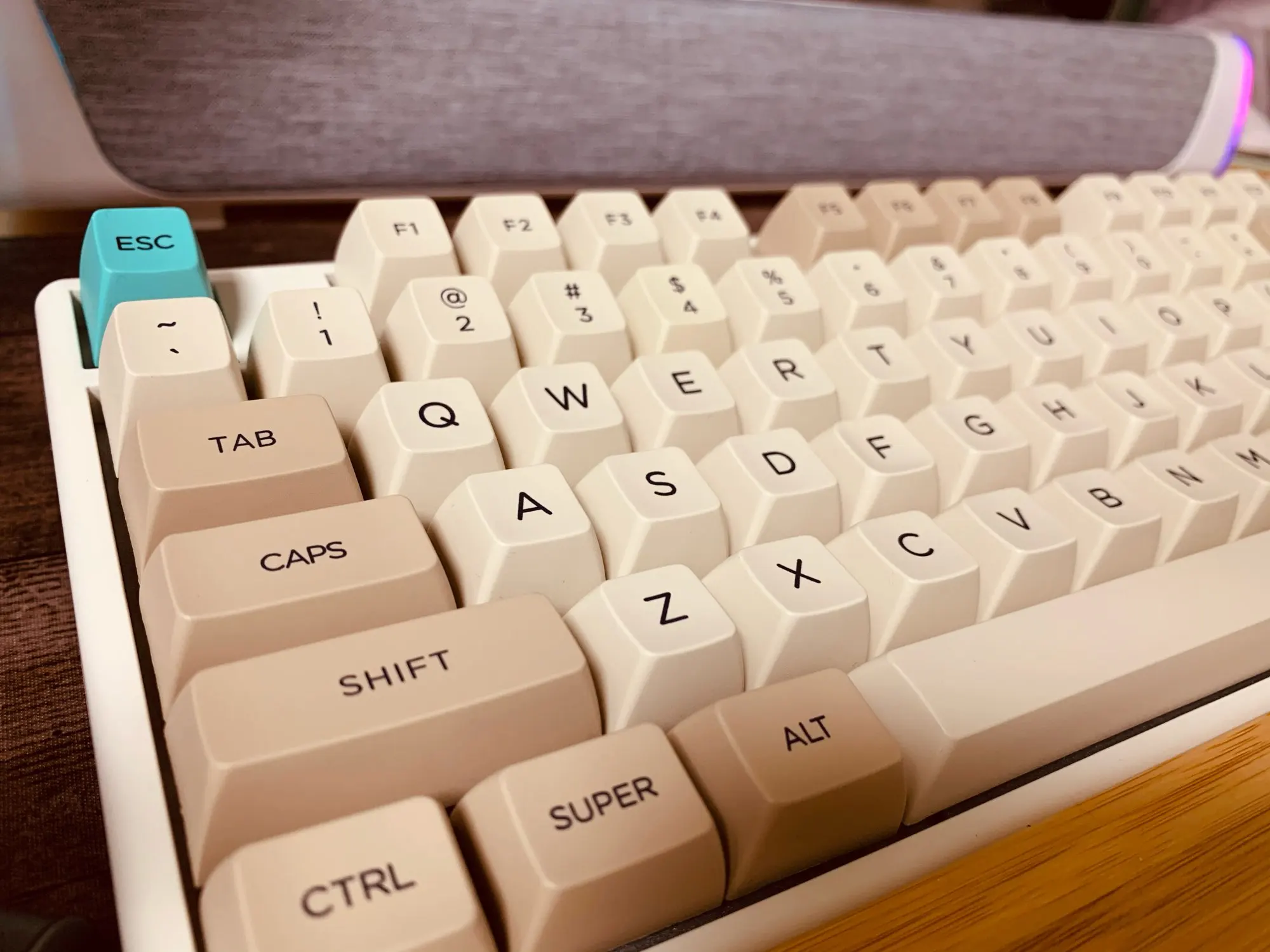 Приятно касаться и печатать. ПБТ-плюс. Из-за профиля звук очень тусклый (который мне нравится). Нет никаких проблем с контролем качества на этом, выглядит хорошо.