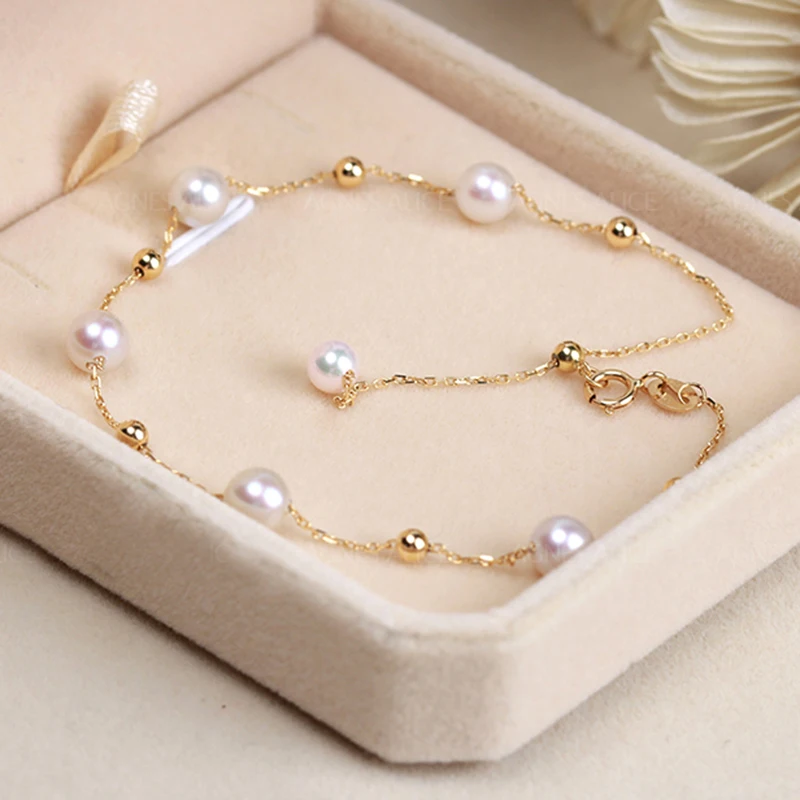 Sinya, 18k, Au750, золотые браслеты с цепочкой, браслеты с натуральным круглым жемчугом, очаровательные, для женщин, для мам, для влюбленных, длина 18-25 см, регулируемые, 2019 Новые и amp;Горячая Распродажа