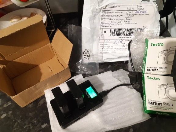 Пришло быстро, за 3 недели, доставили по России СДЕКом курьером бесплатно. Поставил на зарядку, проверять буду на неделе, пока съёмок не планируется, а фотоаппарат не у меня.
