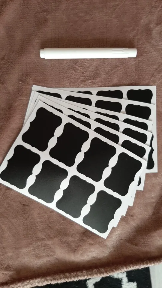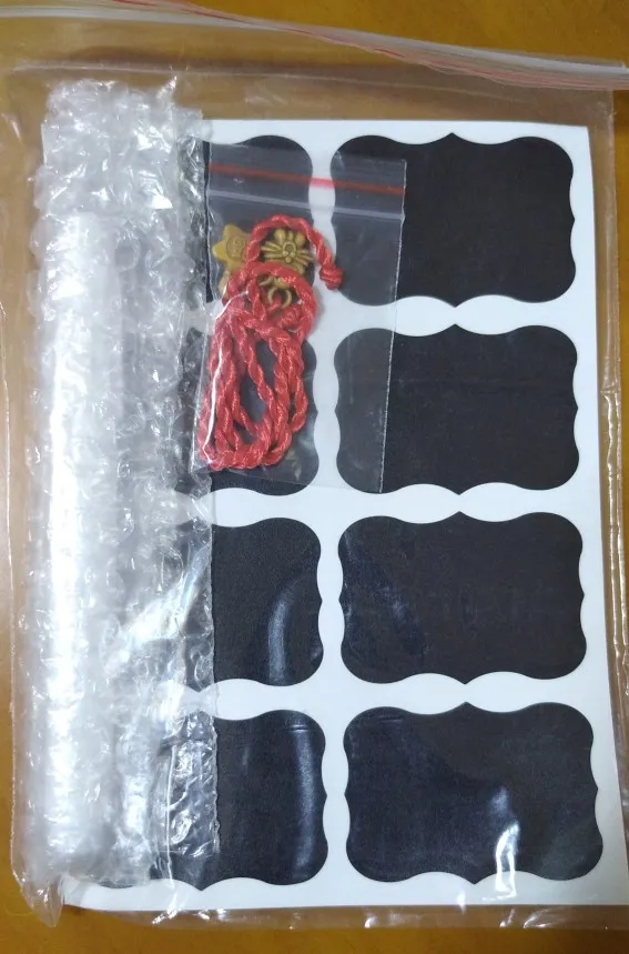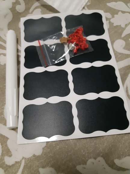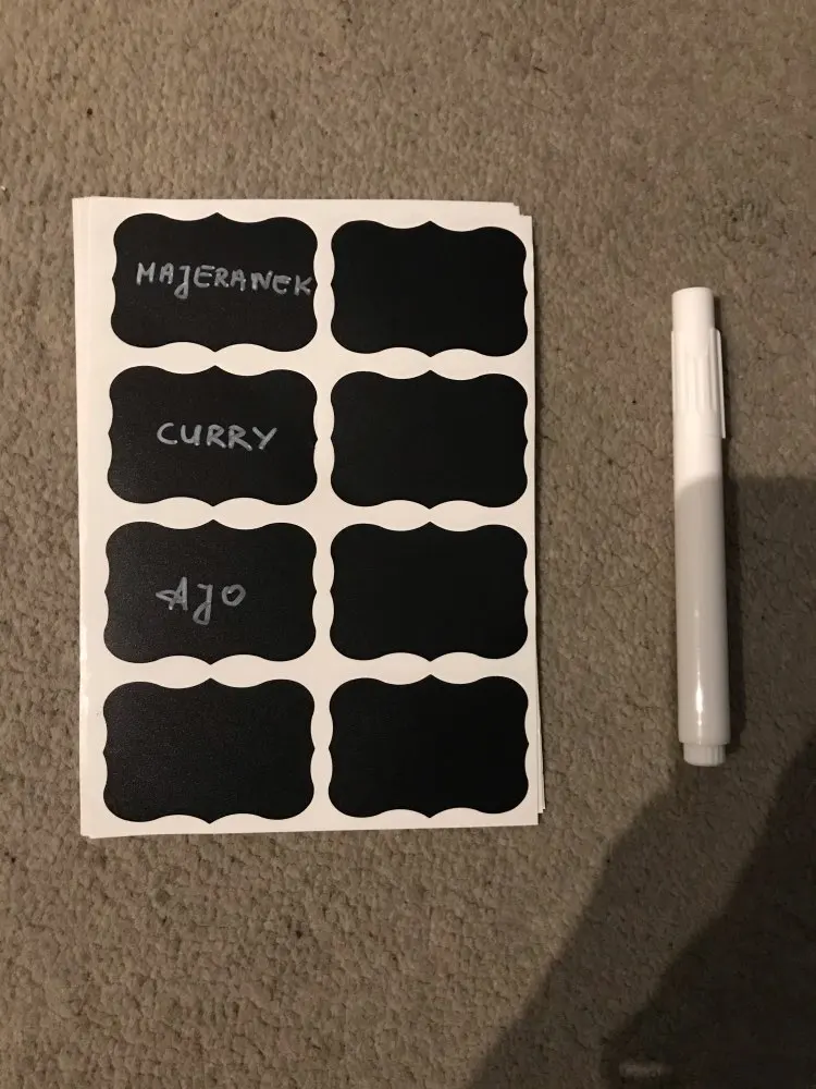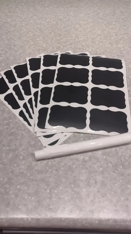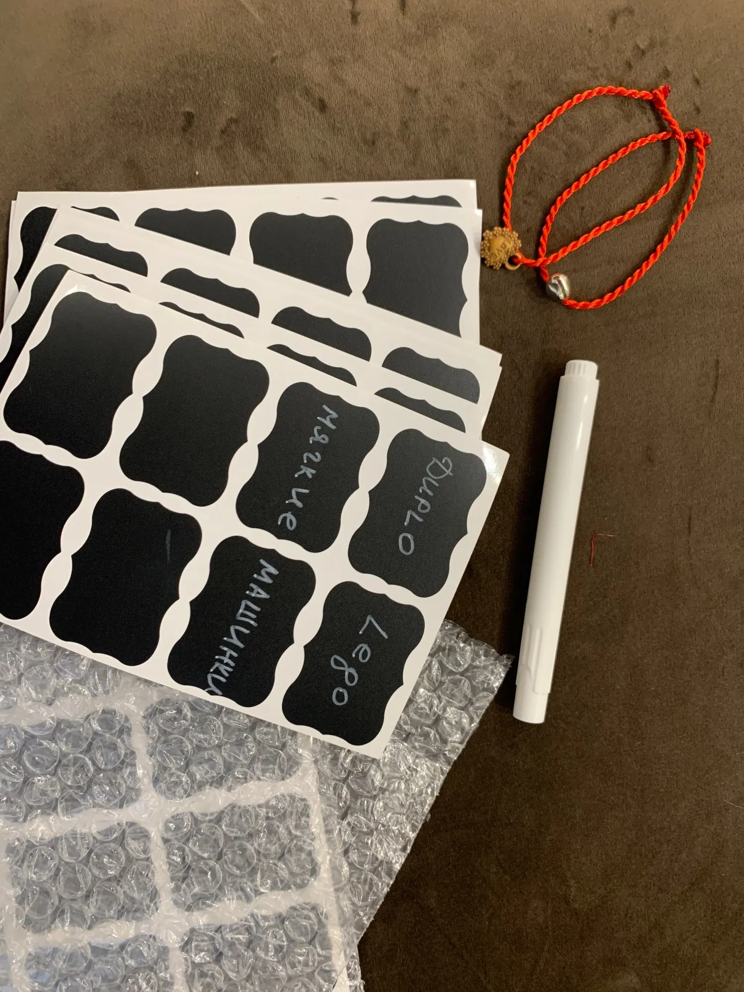 Пришло быстро, упаковка нормальная. Фломастер маленький. Этикетки симпатичные, матово-черные. По идее, надписи должны смываться для повторного использования банки, но это я пока не пробовал.