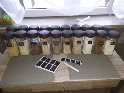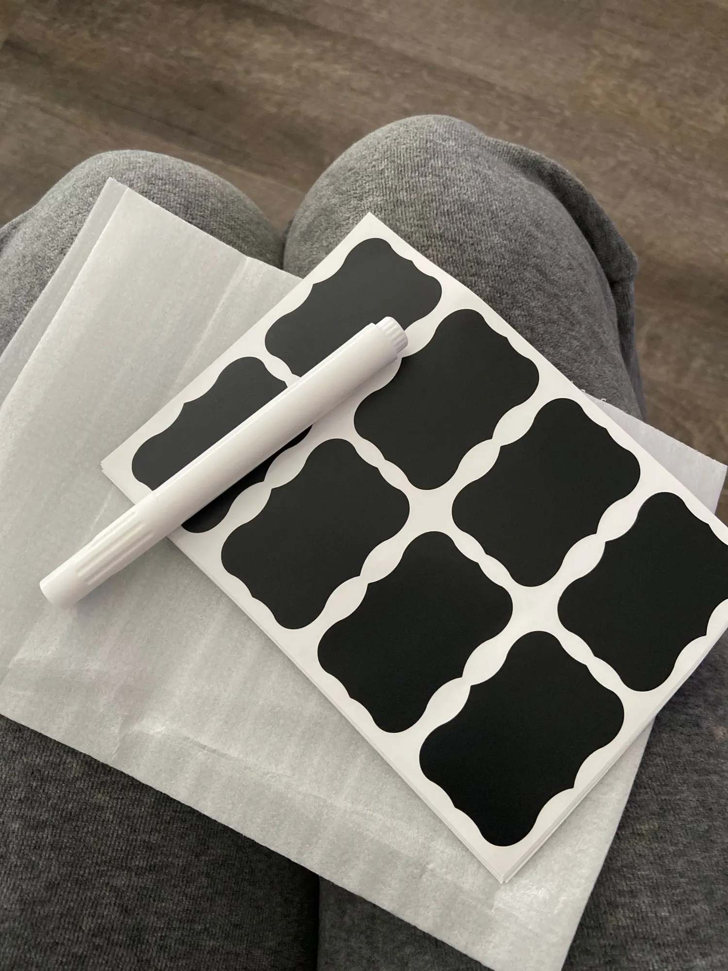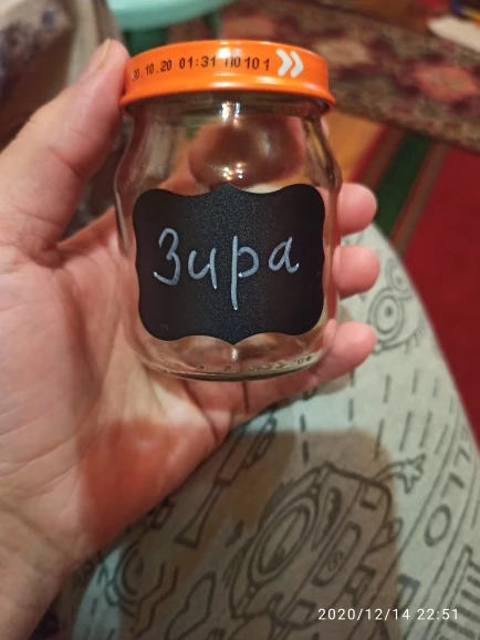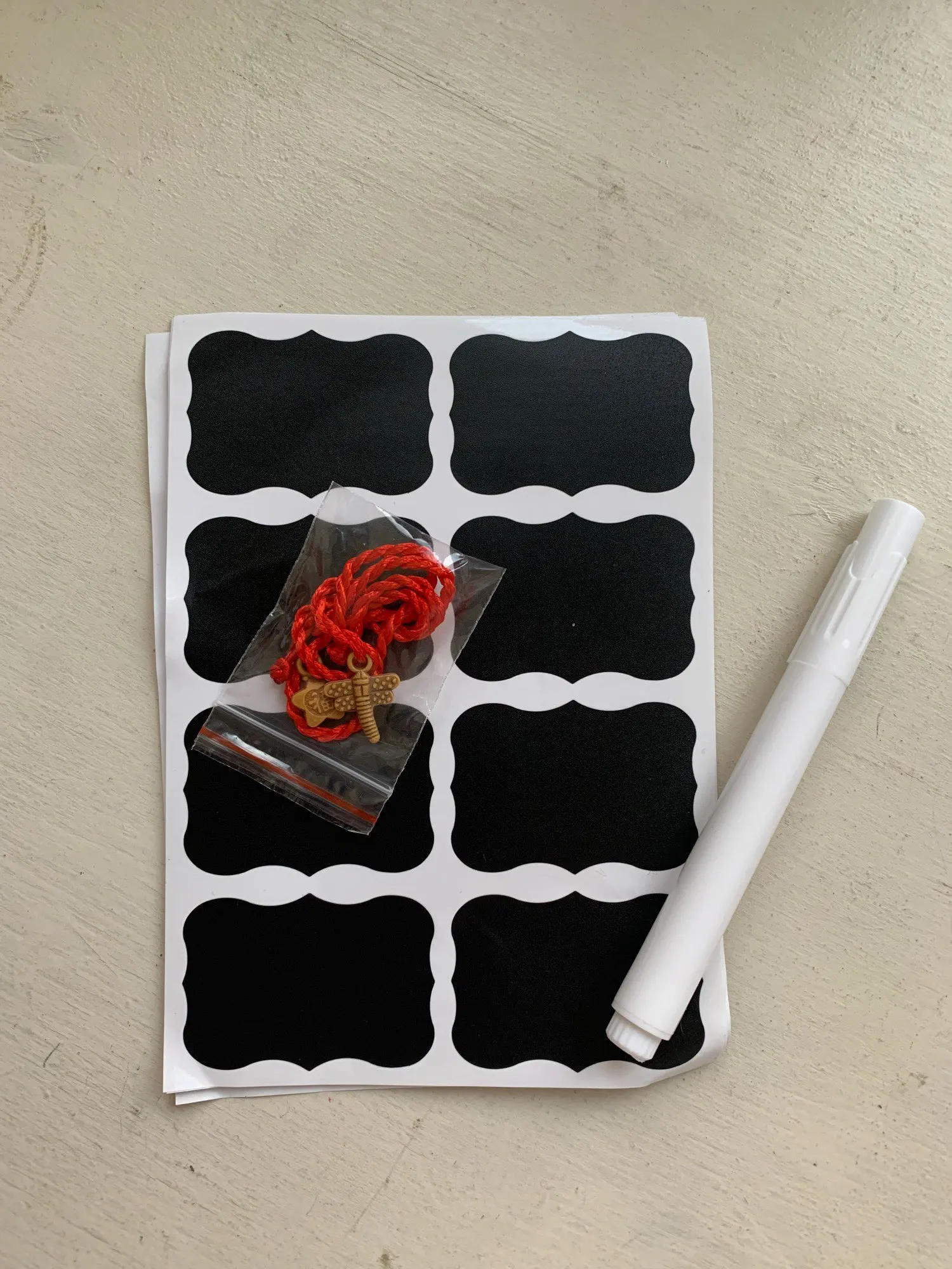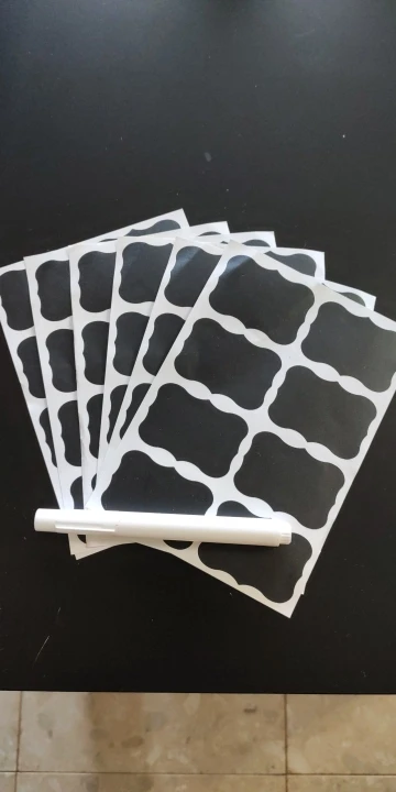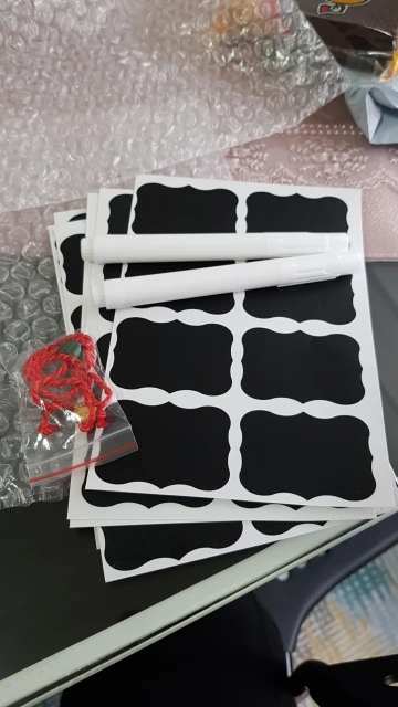 Пришло быстро, упаковка нормальная. Фломастер маленький. Этикетки симпатичные, матово-черные. По идее, надписи должны смываться для повторного использования банки, но это я пока не пробовал.