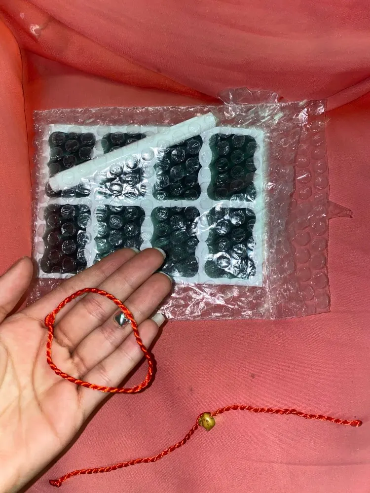 Посылку закинули в почтовый ящик. Намного быстрее, чем я ожидала. Фломастер пишет хорошо. Лучше сначала приклеить наклейку а потом писать, либо написать, подождать пока хорошо высохнет и потом клеить. В подарок положили 2 браслетика. Покупкой очень довольна!