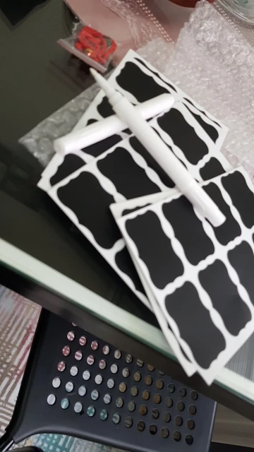 соответствует описанию. маркер хорошо пишет и его видно. наклейки клеятся на банки замечательно