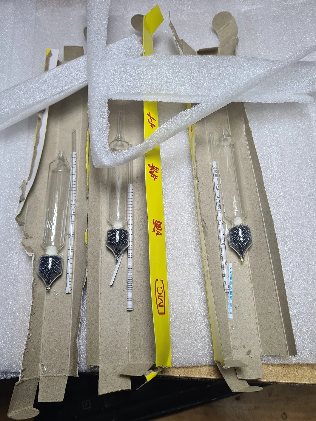 Я не знаю как, но пришло всё целое !!!! Упаковка товара на три балла: ареометры каждый в своем тубусе с кусочком уплотнителя, всё завернуто ещё в один слой уплотнитеяи обычный пакет, края тубусов вообще ничем не защищены. Но , тем не менее, всё пришло целым. Одному богу известно как)))) По точности измерений : сравнивал с ареометром СССР ГОСТ 0-60%, так вот разбежка максимум на 1 градус у трёх из пяти. Вывод: можно брать.