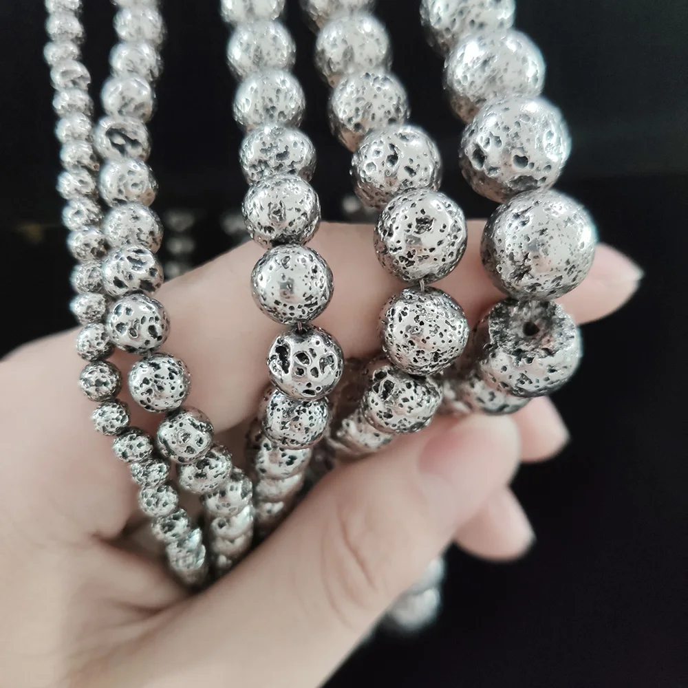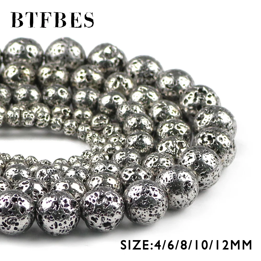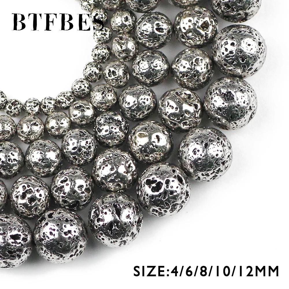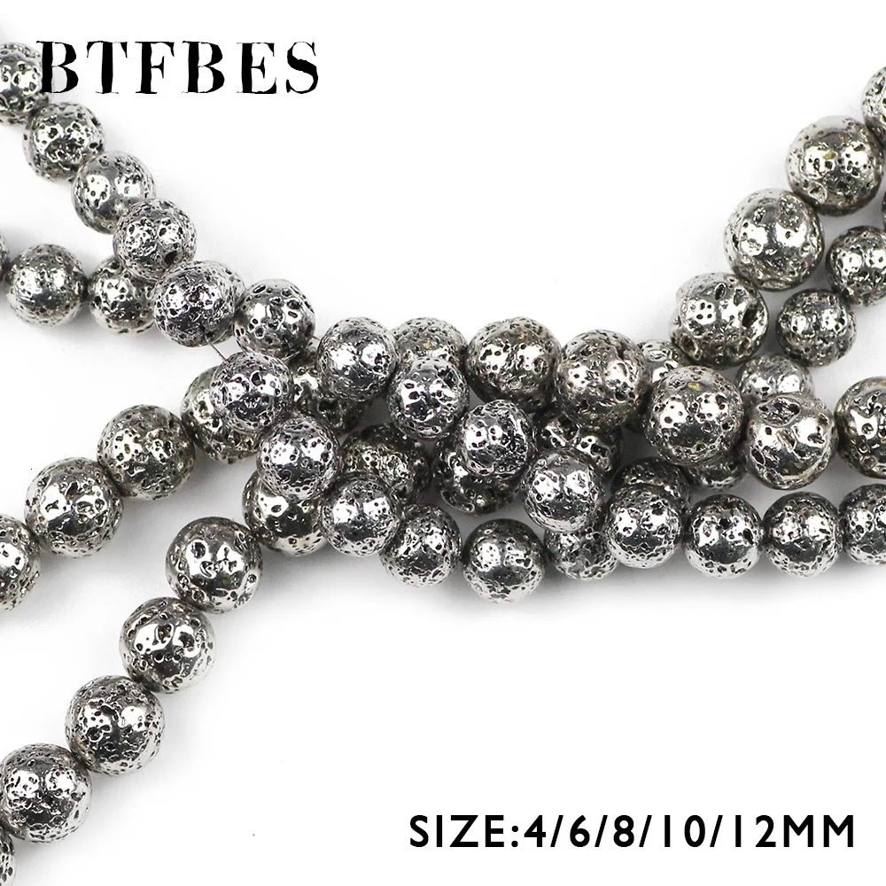 BTFBES натуральный камень древняя серебряная Лава бусины с покрытием вулканической скалы свободные бусины гематитовый шар для изготовления ювелирных изделий своими руками браслетов