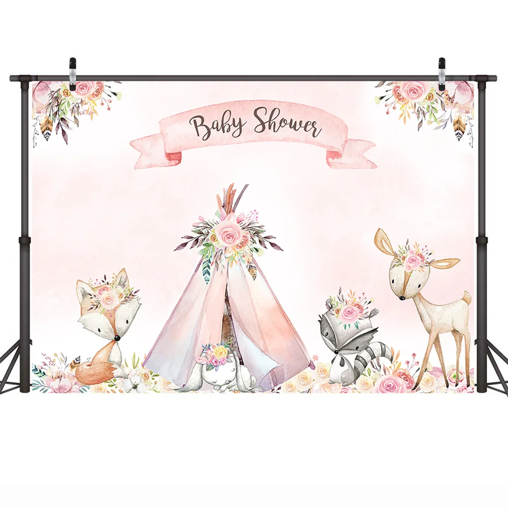 Вигвам MOCSICKAWoodland, фон для фотосъемки в стиле бохо с изображением цветов, лисы, леса, новорожденных