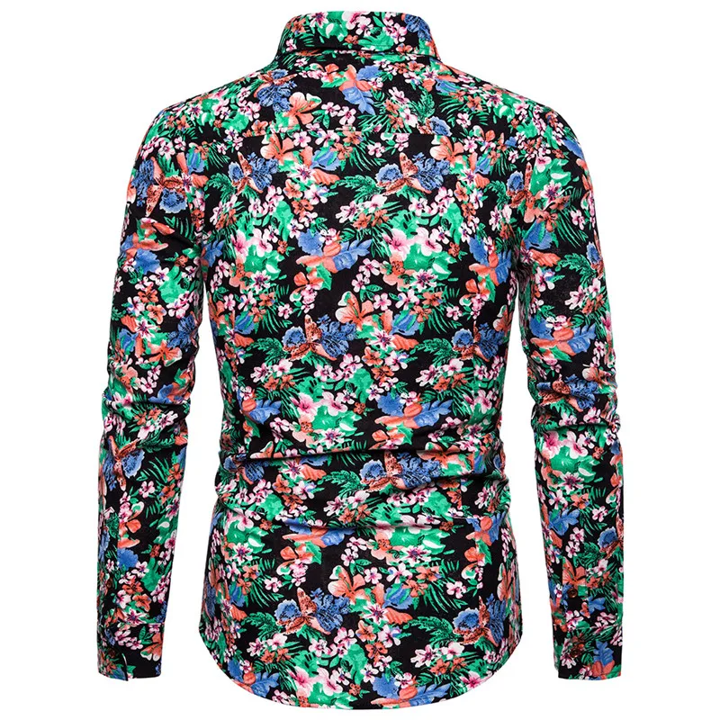 Цветок Цветочный принт Мужская рубашка Camisa Masculina 2021 Модная одежда с длинным рукавом, Мужская одежда, рубашки Slim Fit гавайская рубашка мужская одежда