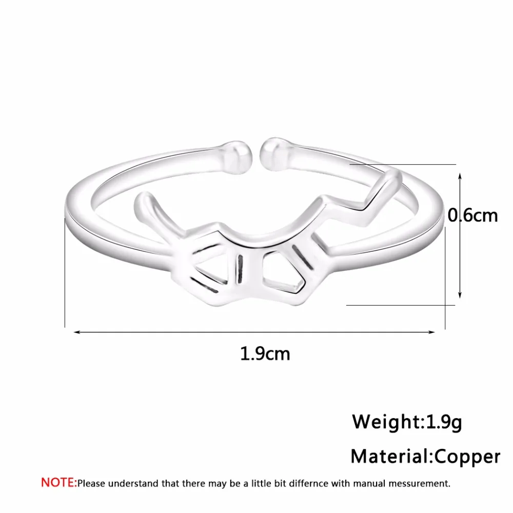 Геометрические многоугольные фотокольца, химия, допамин, Открытое кольцо на палец для женщин, любовь, Рождество, день рождения