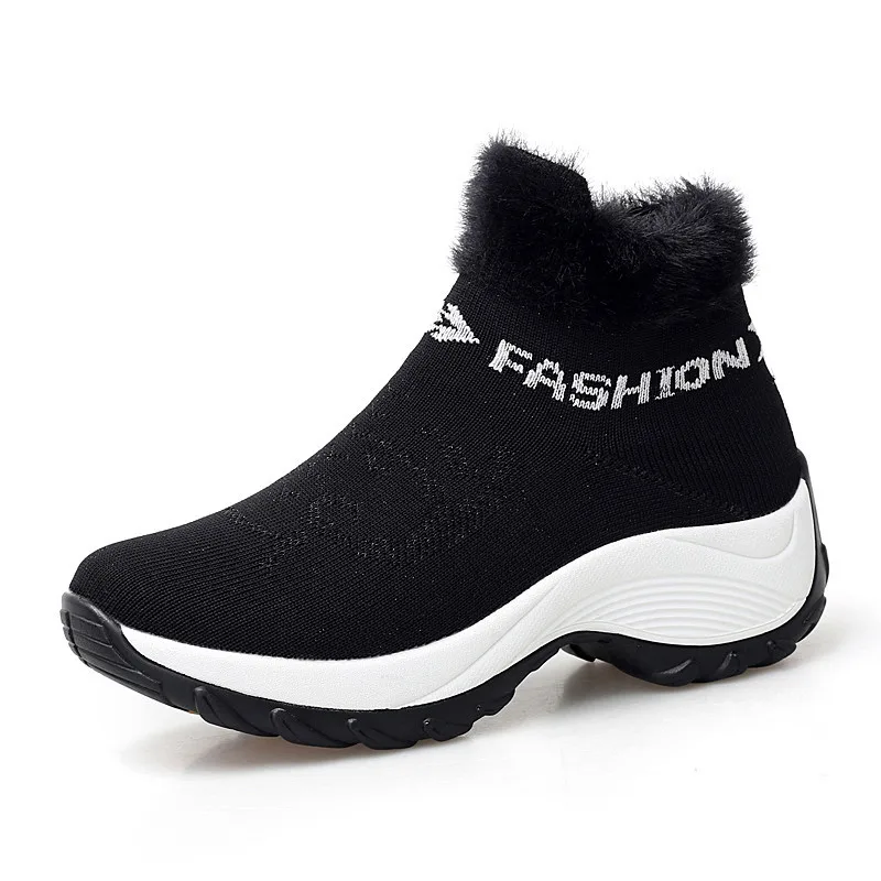 Женские ботинки на танкетке PINSEN, черные теплые ботинки на платформе, без застежек, с мехом, большие размеры, для зимы, 2020