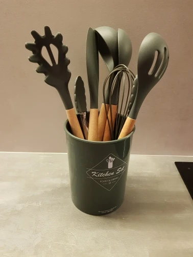 (1 * шлицевой токарь, 1 * скребок, 1 * ложка, 1 * шлицевая ложка, 1 * суповая ложка, 1 * сервер для макаронных изделий, 1 * щетка, 1 * токарь, 1 шпатель)