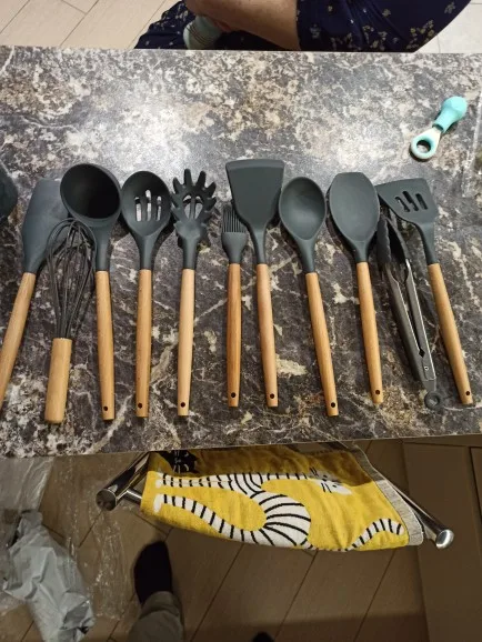 (1 * шлицевой токарь, 1 * скребок, 1 * ложка, 1 * шлицевая ложка, 1 * суповая ложка, 1 * сервер для макаронных изделий, 1 * щетка, 1 * токарь, 1 шпатель, 1 взбиватель для яиц, 1 щипцы для еды)