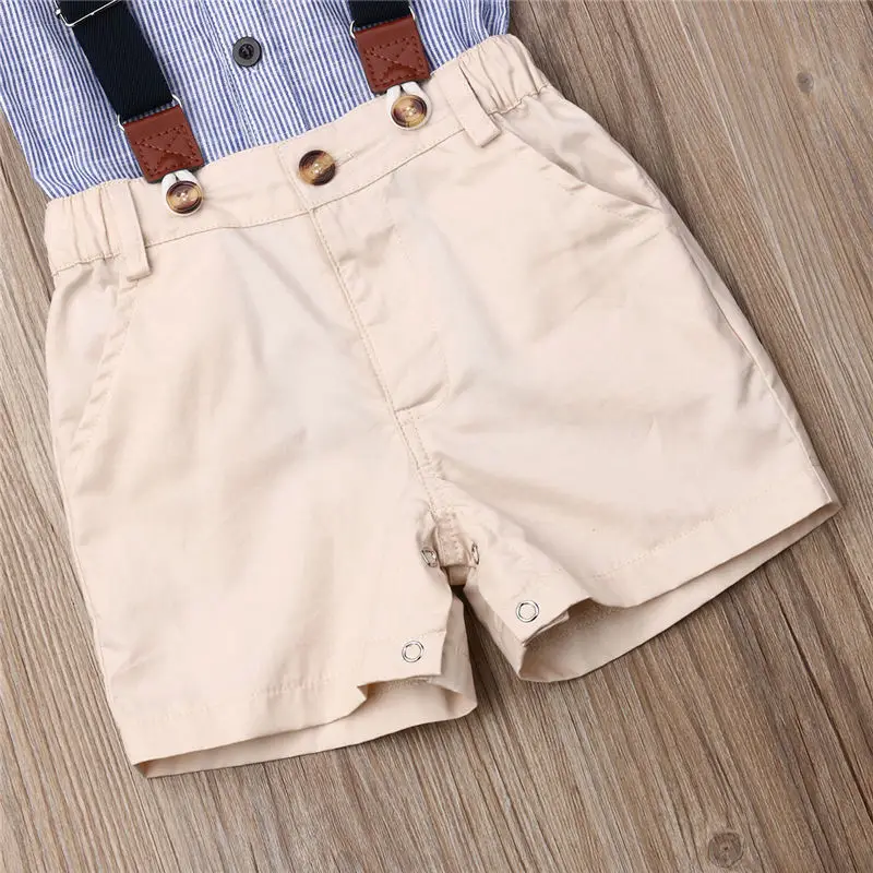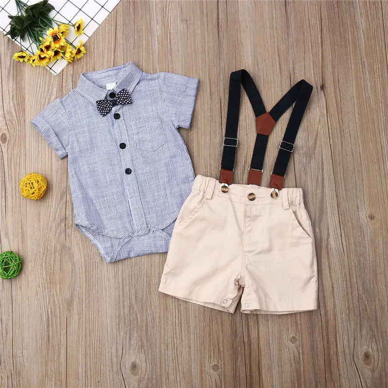 Комплект одежды для маленьких мальчиков, Костюм Джентльмена деловой костюм для малышей рубашка в полоску с галстуком-бабочкой для малышей боди + шорты на подтяжках