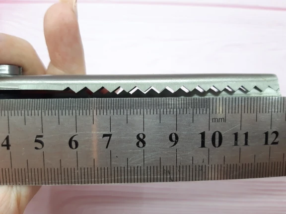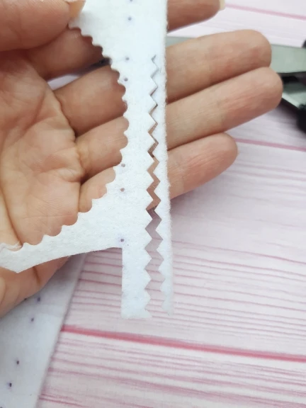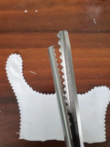 Доставка в Калугу 2 недели. Жто вторые мои такие ножницы, первые покупала давно, года 2 назад, волну 5 мм, использую на фетре и кожзаме. В этот раз заказала зигзаг. Режут отлично как хлопок, так и фетр и кожу. Довольна. Но вот высота зигзага немного подвела, расчитывала немного на большее, чем 3-3,5 мм(((. 5 мм у них расстояние между основаниями зигзага, а вот высота 3-3,5 мм. На фото пример линии среза на кожзаме и трикотаже, фетр не поместилось фото в отзыв, добавлю в дополнительный отзыв