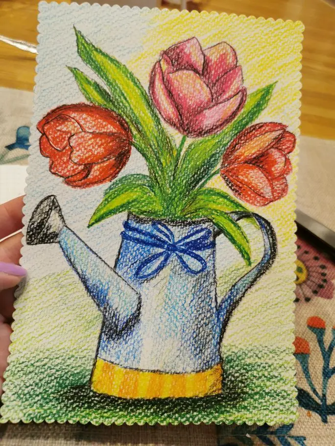 Его ручка пластиковая, но они очень красивые, у нее хороший край