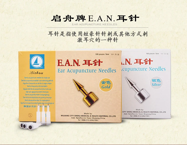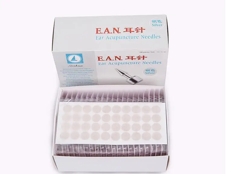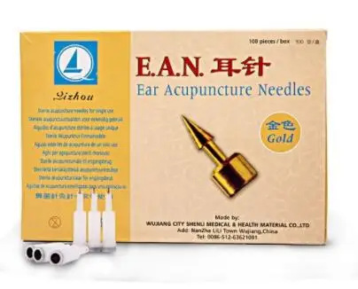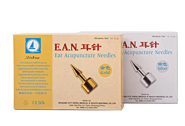 100 шт., Qizhou Ушная игла для иглотерапии, золотистыеСеребристые серьги-гвоздики