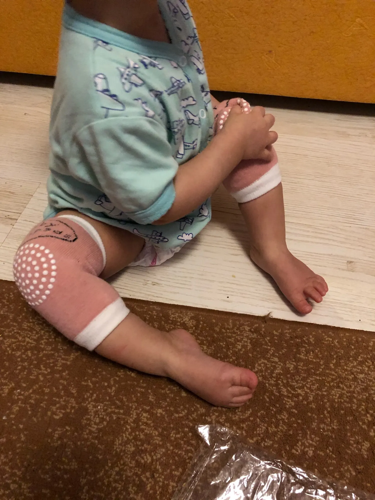 Прекрасные наколенники. Не жмут, резиночки не тугие. Иногда от интенсивного ползания сползают. Ребёнок не замечает их, определённо удобно.