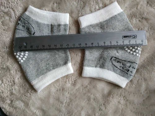 Хорошие наколенники. Материал мягкий, скользить не будут. Постирала вручную для проверки - не красятся. В длину растягиваются как нужно. Единственное для нас - туговаты резинки - 7 месяцев, вес 8 кг. Пока растягиваю. Возможно, получится их увеличить и будем носить. Продавец отправил на следующий день. Путь до Москвы занял около месяца. Спасибо продавцу!