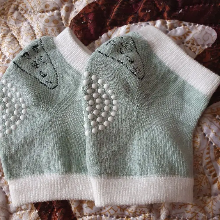 Клёвые!Реально ребёнок пополз в них,до этого пытался,но ножки скользили и по ламинату и по коврику игровому(специальному).