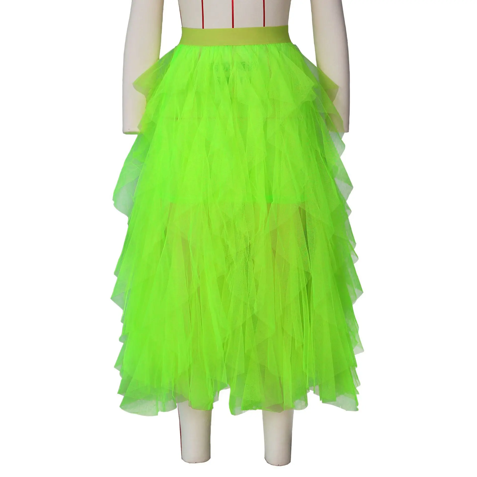Юбка-пачка Женская Повседневная неоново-зеленая, сетчатая, с высокой талией, летняя, 2019