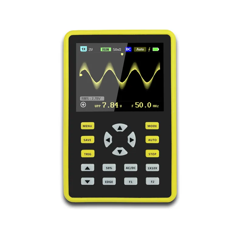 ADS5012H является универсальным, очень практичным, экономичный Ручной осциллограф для индустрии технического обслуживания и НИОКР с частотой дискретизации в реальном времени от DANIU до 500 мс/с и аналоговой пропускной способностью 100 МГц. С функцией полного запуска (одиночный, нормальный, автоматический), он может быть использован свободно как для периодического аналогового сигнала, так и для непериодического цифрового сигнала. Встроенный модуль защиты высокого напряжения может выдерживать до 400 В Непрерывное напряжение и 600 В-пиковое напряжение. Нет необходимости беспокоиться о выгорании осциллографа, вызванном высоким напряжением, не проложенным в положение 10X. Большой режим сканирования базы времени, который отслеживает медленные изменения уровня. Оснащенный высокоэффективным автоматическим нажатием одной кнопки, измеряемая форма сигнала может отображаться без сложной регулировки. Дисплей высокой четкости ЖК-дисплей экран с 2,4 дюймов 320*240 Разрешение TFT Полный технологии ночного видения, визуальный эффект очень хорошо. Чрезвычайно удобная и быстрая функция хранения сигналов, встроенный объем памяти 64 м, может хранить до 2000 изображений формы волны, процесс хранения прост и быстрый, сохраняет форму тока и в любом месте, только одно касание, никаких громоздких подсказок и вариантов. Мощный файловый менеджер waveform, поддержка просмотра эскизов, просмотра, просмотра деталей, поворота страницы, удаления и многого другого. Встроенный литий-ионный аккумулятор высокого качества 3000 мАч, может использоваться непрерывно в течение 8 часов при полной зарядке. Корпус оснащен высококачественным силиконовым защитным чехлом, нетоксичным и не содержащим свинца, защитой окружающей среды, противоскользящим, противоударным и противоударным, всесторонней защитой фюзеляжа, мягкая текстура, приятная на ощупь.