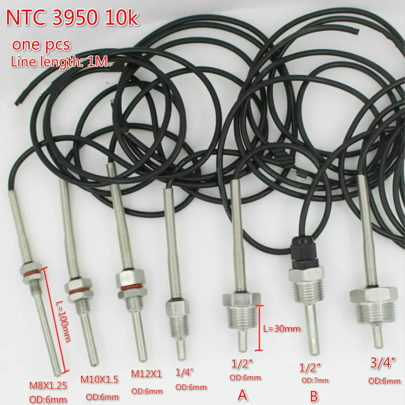 Цифровой датчик температуры NTC 3950 10K G12 "14" 34 "M10X1.5 M12X1, резьба 1 м, ПВХ 2-жильный провод, корпус из нержавеющей стали SUS304