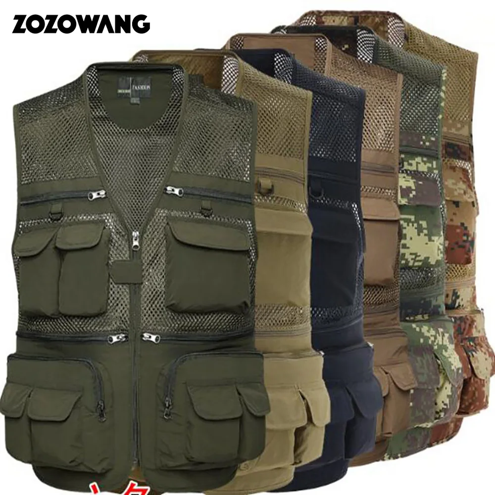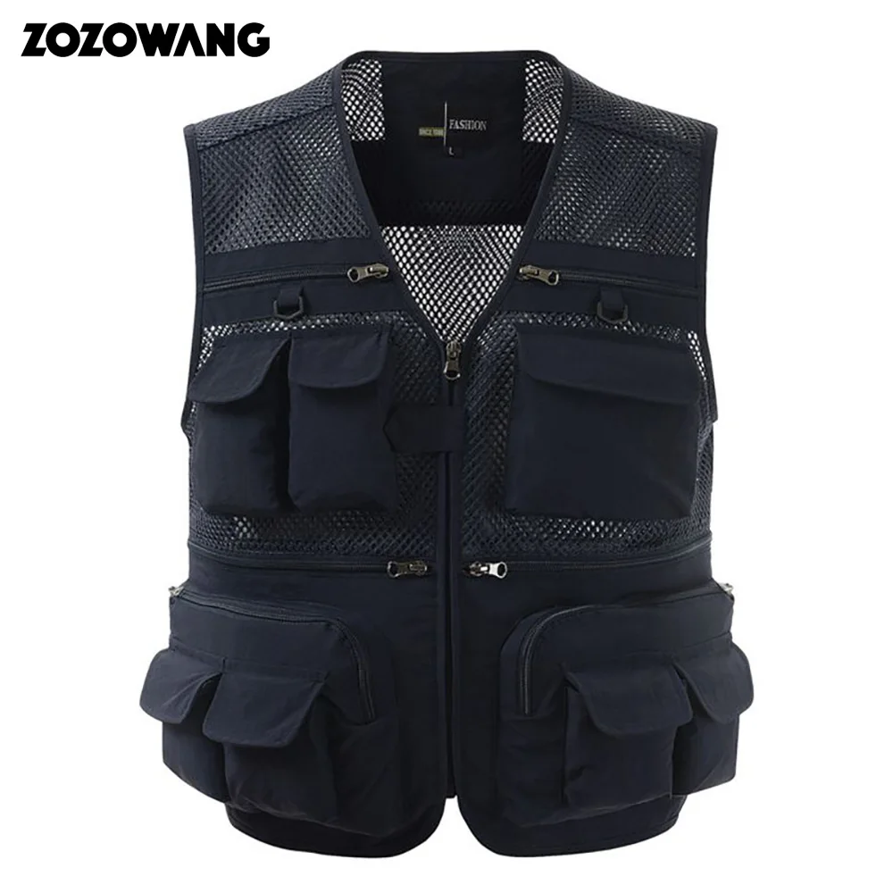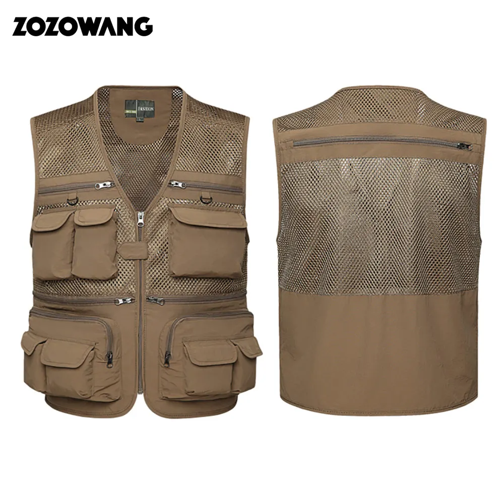 Мужской уличный спортивный жилет ZOZOWANG, рыболовная куртка с несколькими карманами, на молнии, свободная сетчатая одежда, одежда для рыбалки