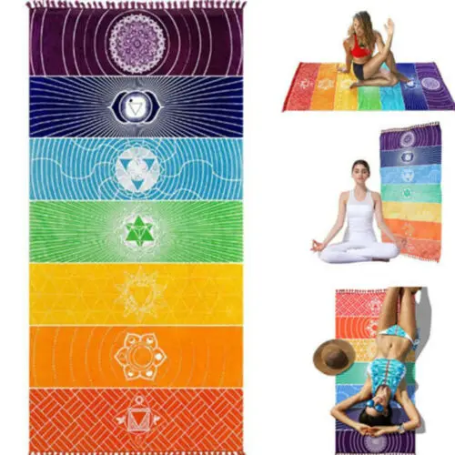 Прямая поставка! Один Радужная чакра гобеленовое полотенце Ковер Мандала Boho полосками Дорожный Коврик для йоги напольные коврики 150x7 0 см100x45cm
