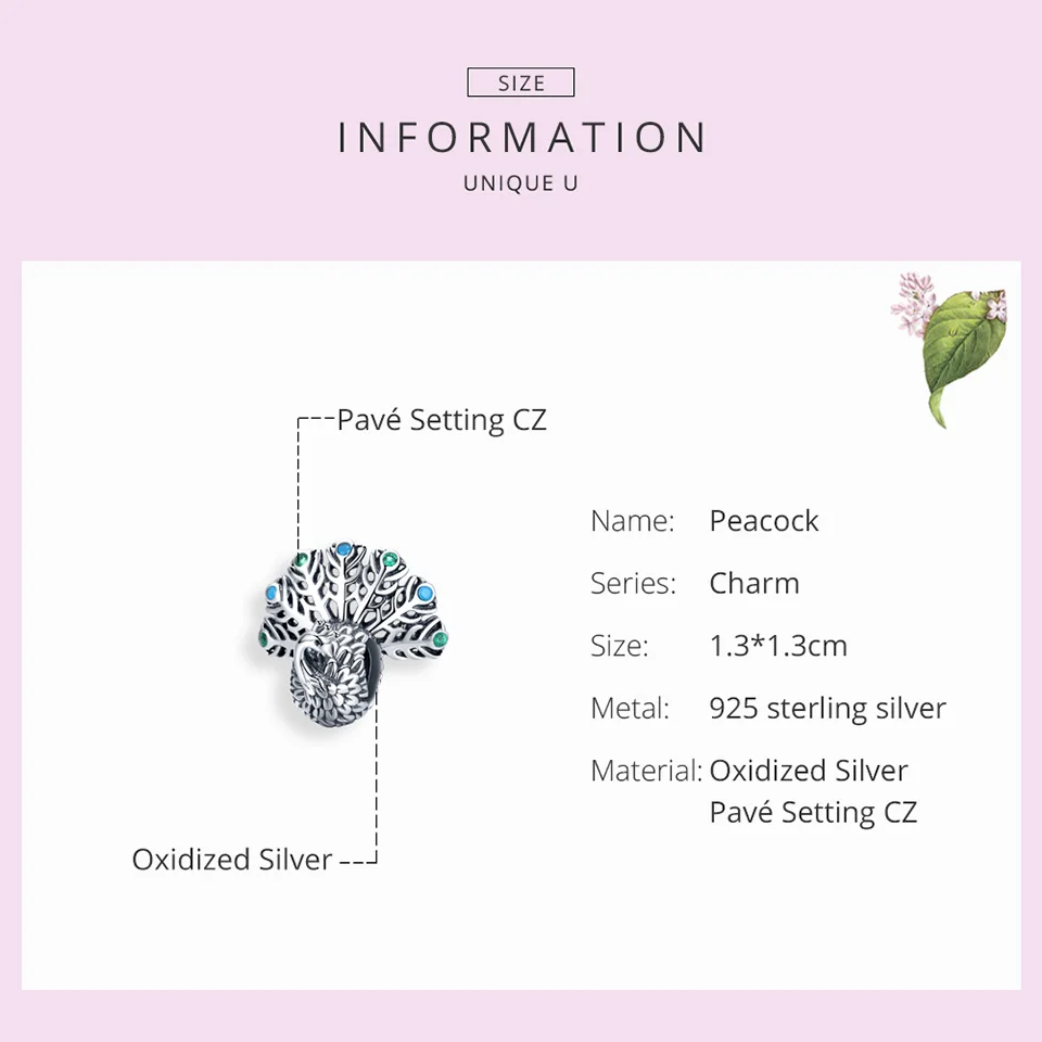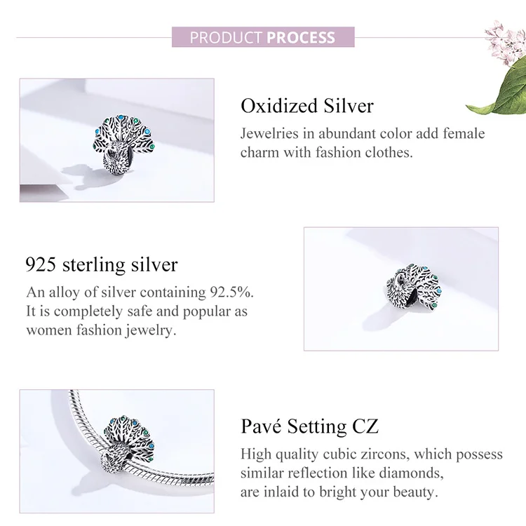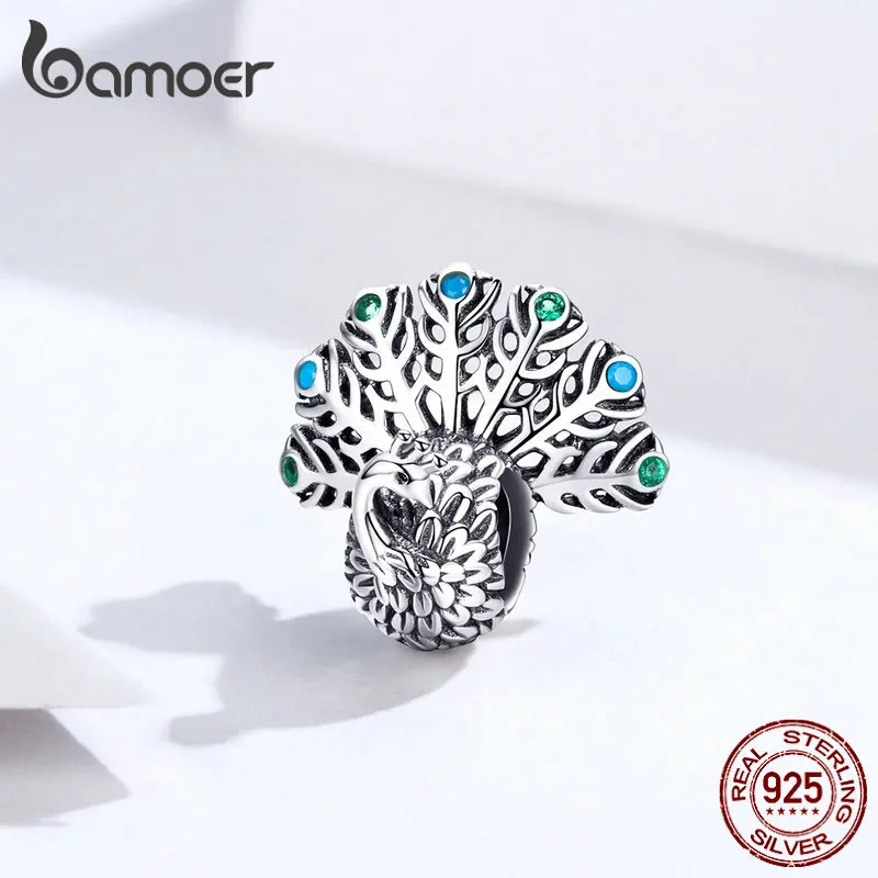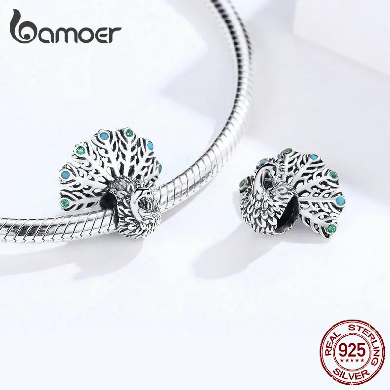 Bamoer изящный металлический браслет с павлиньими бусинами 3D, роскошный фирменный оригинальный браслет из серебра 925 пробы, 3 мм, ювелирное изделие, SCC1260