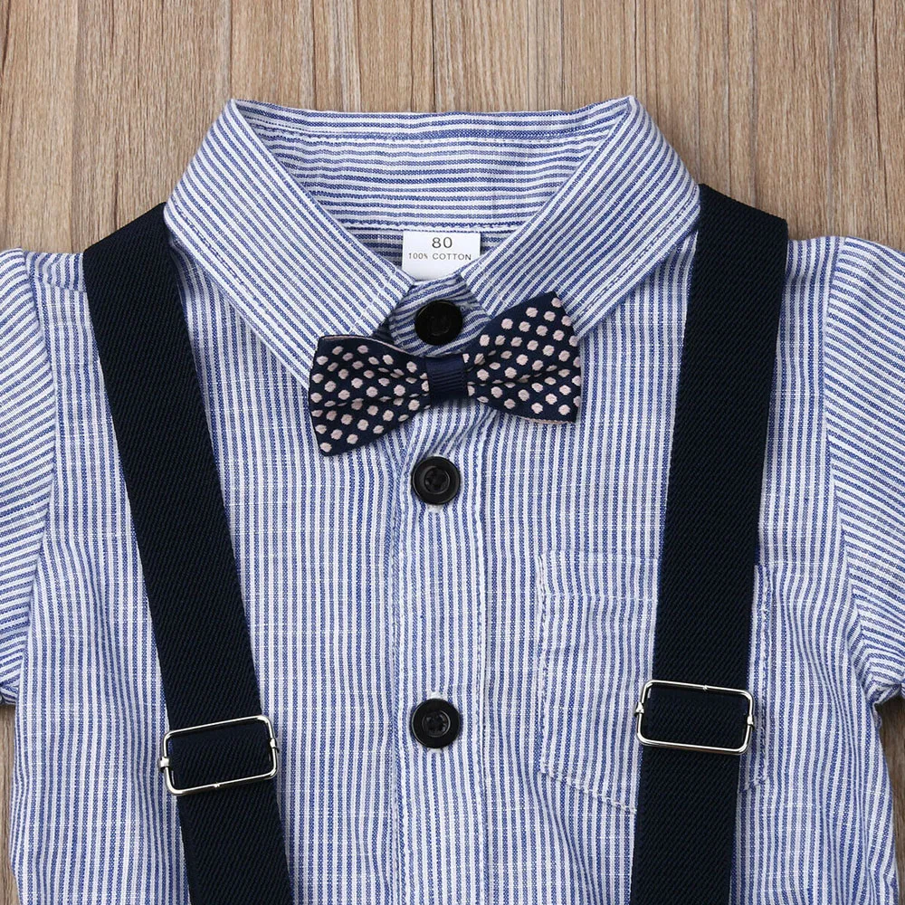 Одежда для новорожденных мальчиков; Комбинезон в полоску с короткими рукавами и галстуком-бабочкой; Шорты на подтяжках; Комбинезоны; Комплект летней одежды из 2 предметов