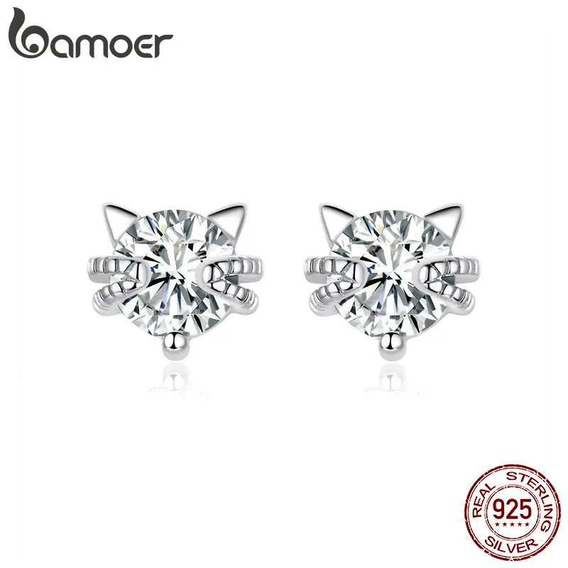 Bamoer милые серьги с подвеской в форме кошки серьги для женщин Аутентичное Стерлинговое Серебро 925 Чистое CZ Ювелирные изделия для девочек новый режим Bijoux BSE205