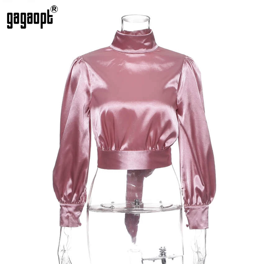 Gagaopt Женская Сексуальная водолазка с открытой спиной Элегантные укороченные топы с длинным рукавом Розовая домашняя одежда для отдыха