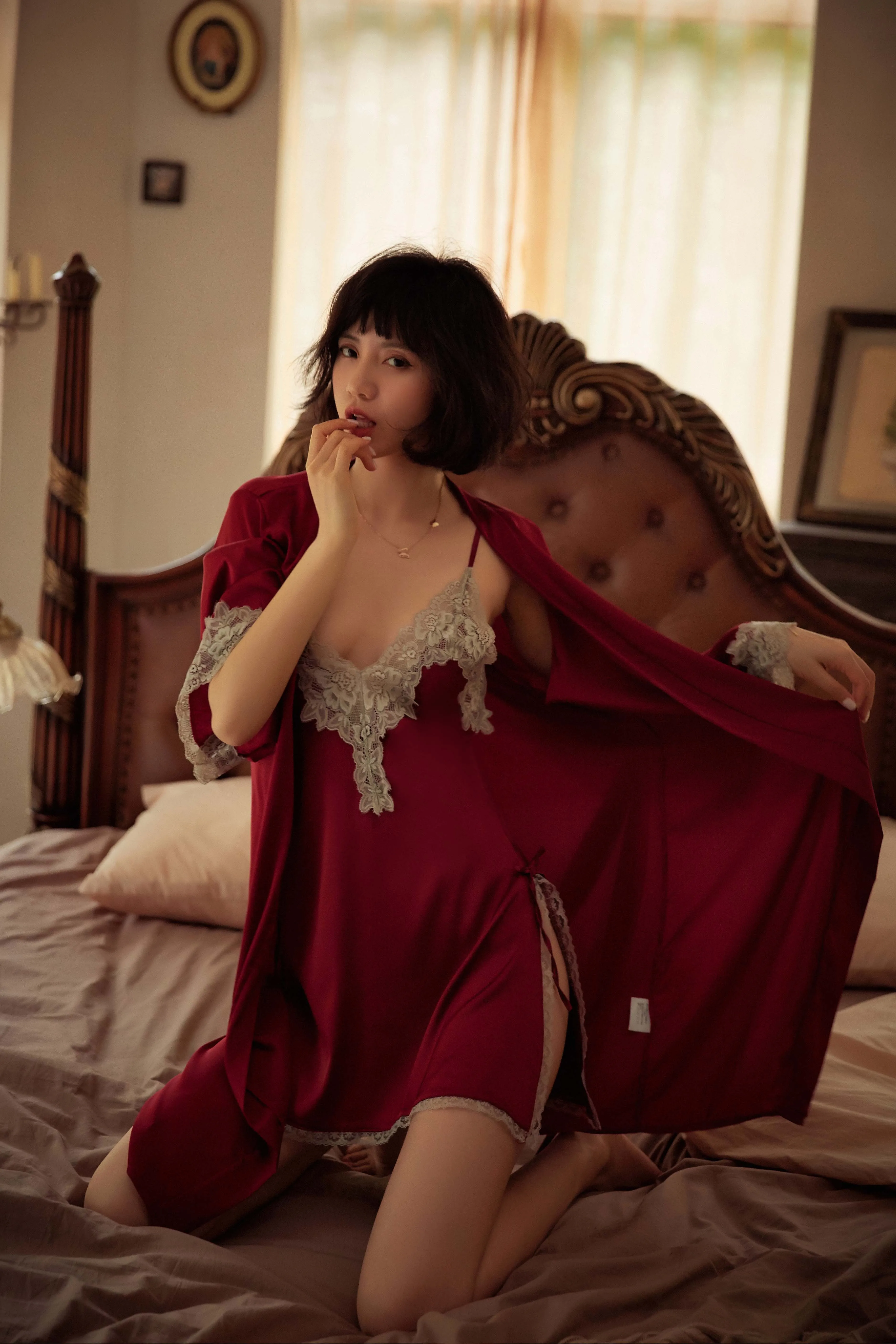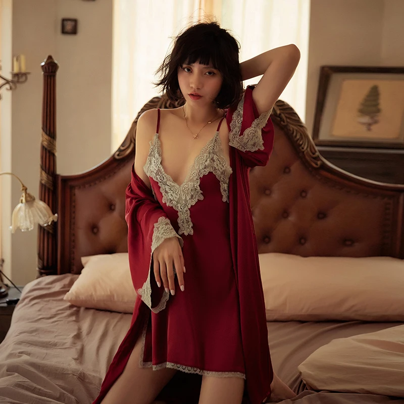 Сексуальный мусс, открытая спина, глубокий v-образный вырез, кружевная женская ночная рубашка с завязками, наборы бантов, свадебная сексуальная одежда для сна, для молодых девушек, красный, белый, Новинка