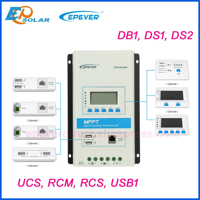 EPEVER TRIRON UCS DS2Слежением за максимальной точкой мощности, 40A 30A 20A 10A за максимальной точкой мощности, Солнечный Контроллер заряда 12V 24V черные хромовые автомобильные-светильник ЖК-дисплей модульный солнечный регулятор