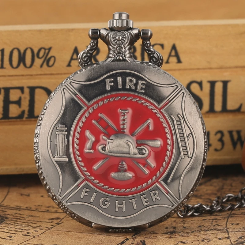 Карманные часы с подвеской в виде символа пожарного, серо-красного цвета