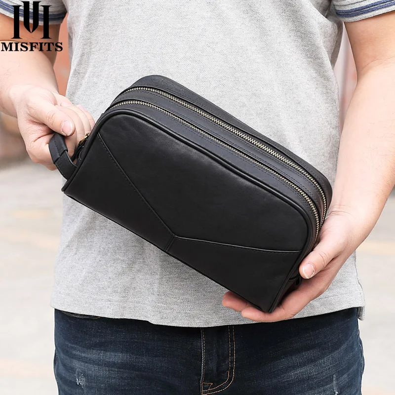 Косметичка MISFITS crazy horse из натуральной кожи для мужчин, вместительная Винтажная сумочка для туалетных принадлежностей, дорожный органайзер для косметики и туалетных принадлежностей