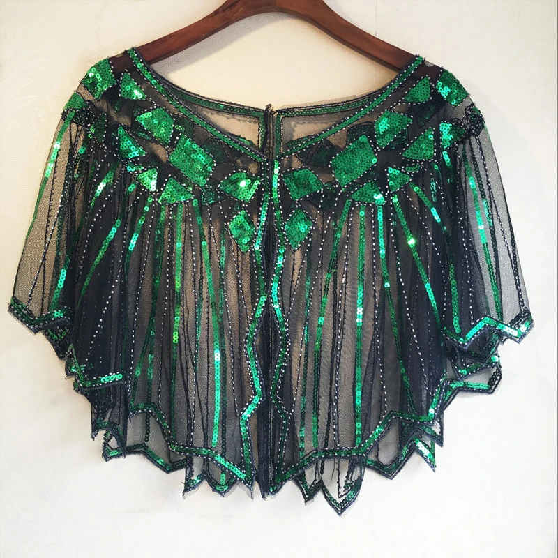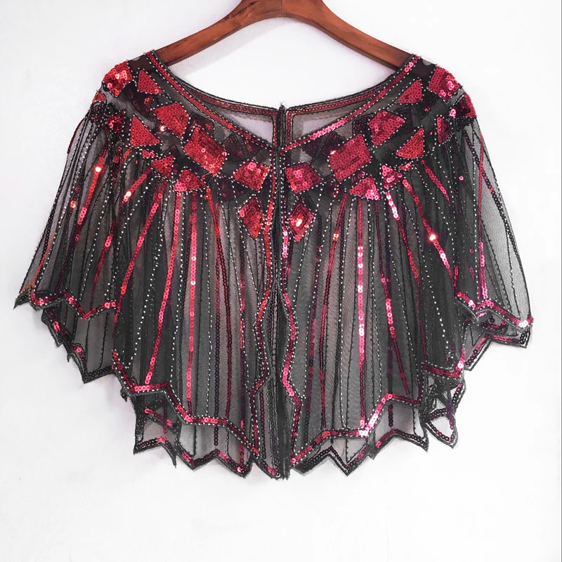 2021 правильной геометрической формы, с блестками накидка, расшитая бисером Винтаж 1920s шаль Хлопушки Cover Up Для женщин дамские сетчатые шарф для Вечерние вечернее платье Болеро