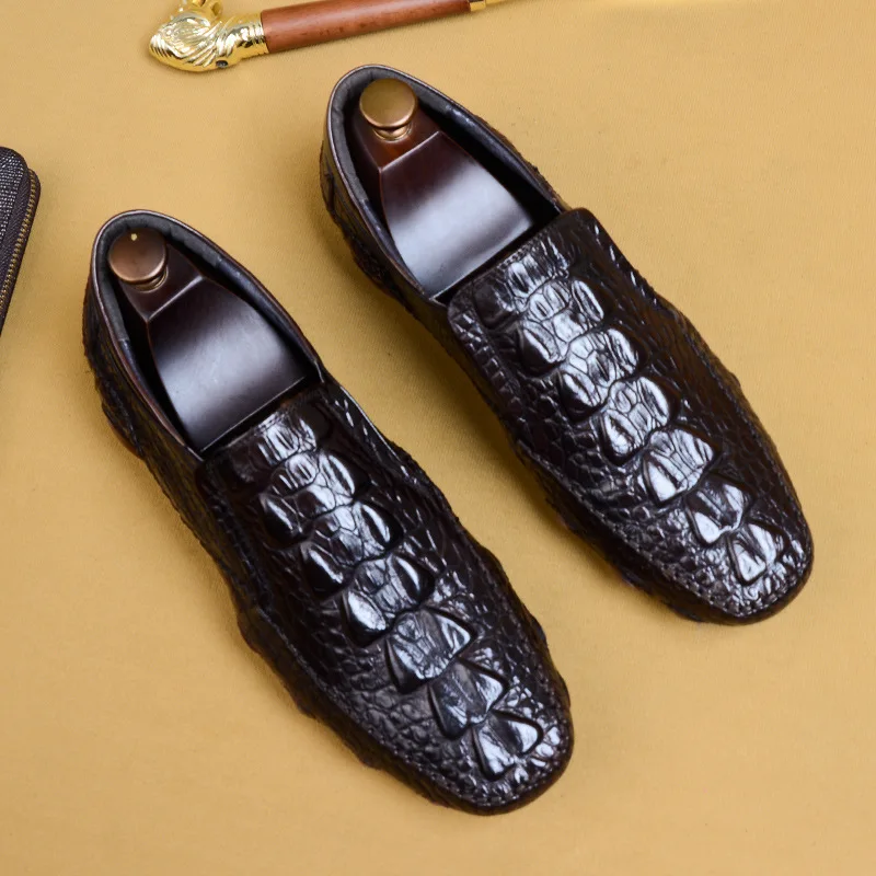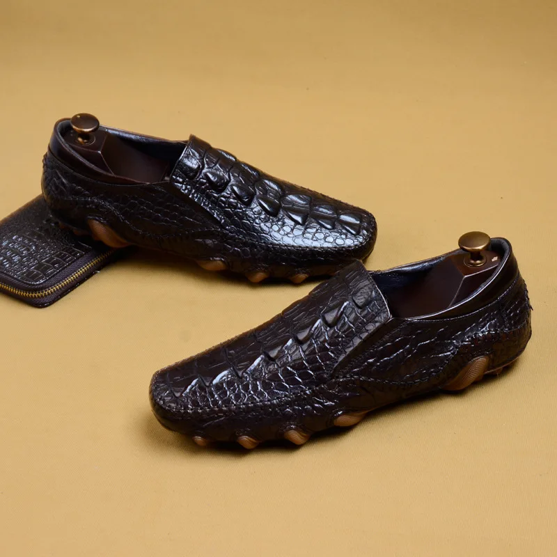 Мужская повседневная обувь из натуральной кожи, дизайнерские мужские мокасины из крокодиловой кожи, мужские кожаные повседневные Мокасины