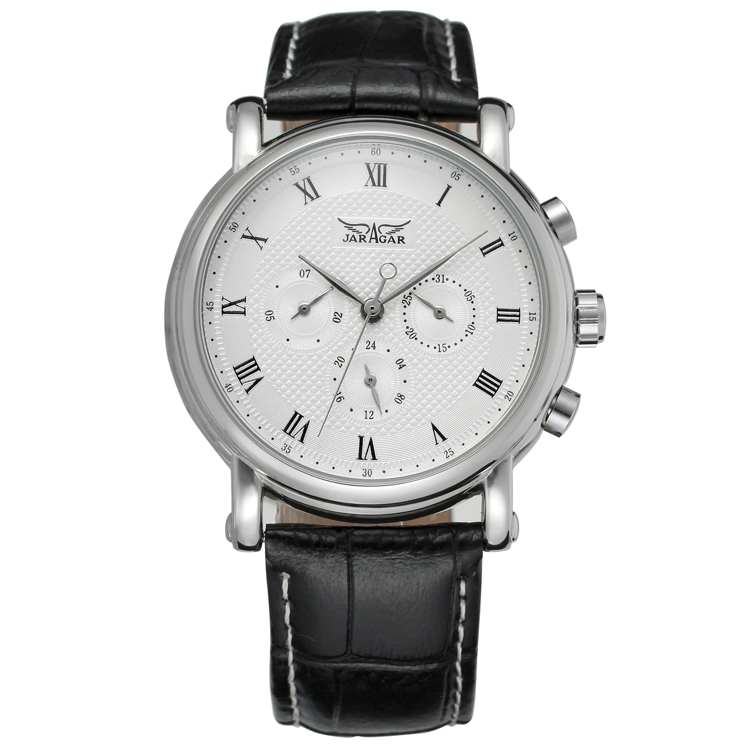 Модные мужские часы Jaragar Топ бренд класса люкс автоматические механические часы с автоматическим самозаводом 24 часа неделя Дата солидный Римский Индекс циферблат из искусственной кожи