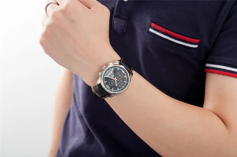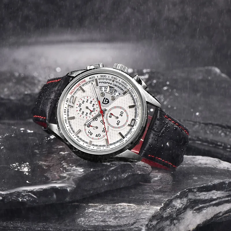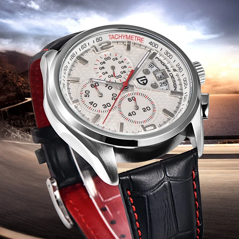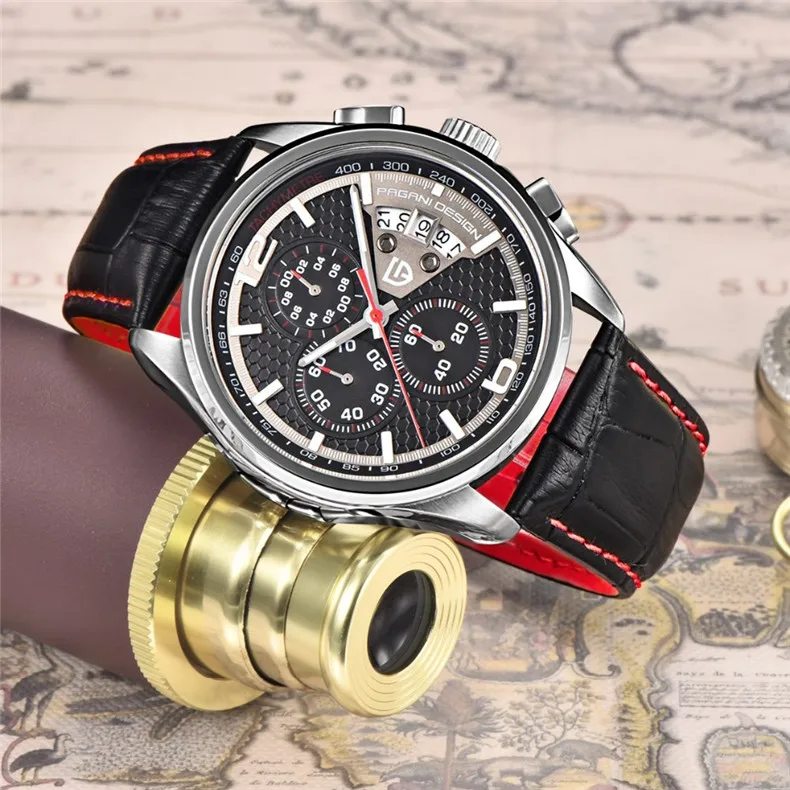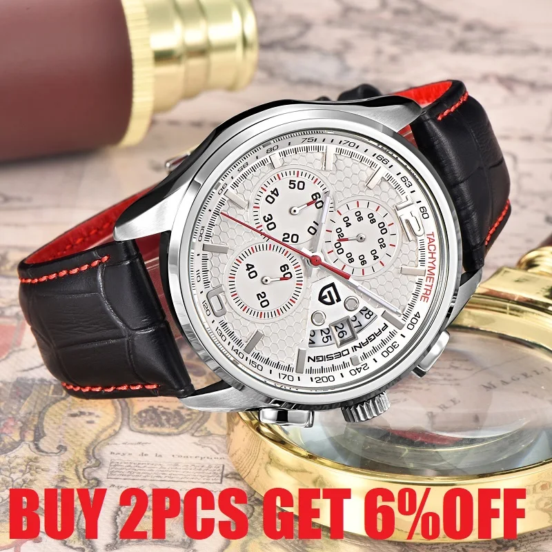 Часы наручные PAGANI Мужские кварцевые с кожаным ремешком, спортивные роскошные брендовые модные с механизмом, с хронографом