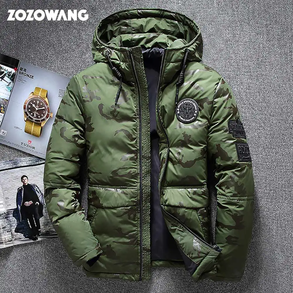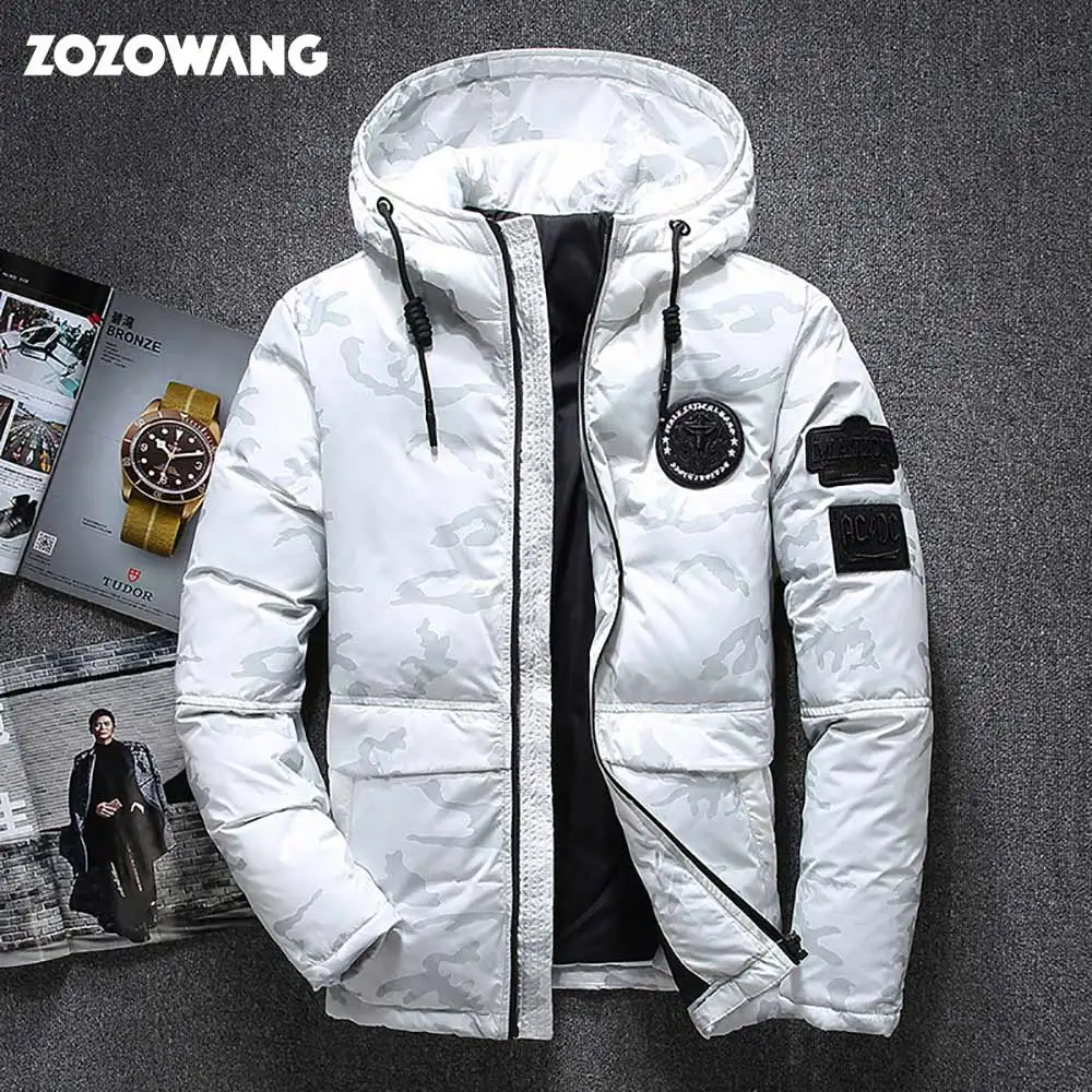 ZOZOWANG Высококачественная Мужская зимняя куртка, толстая зимняя парка, пальто, белый пуховик на утином пуху, мужское ветрозащитное пуховое пальто, Размер 4XL