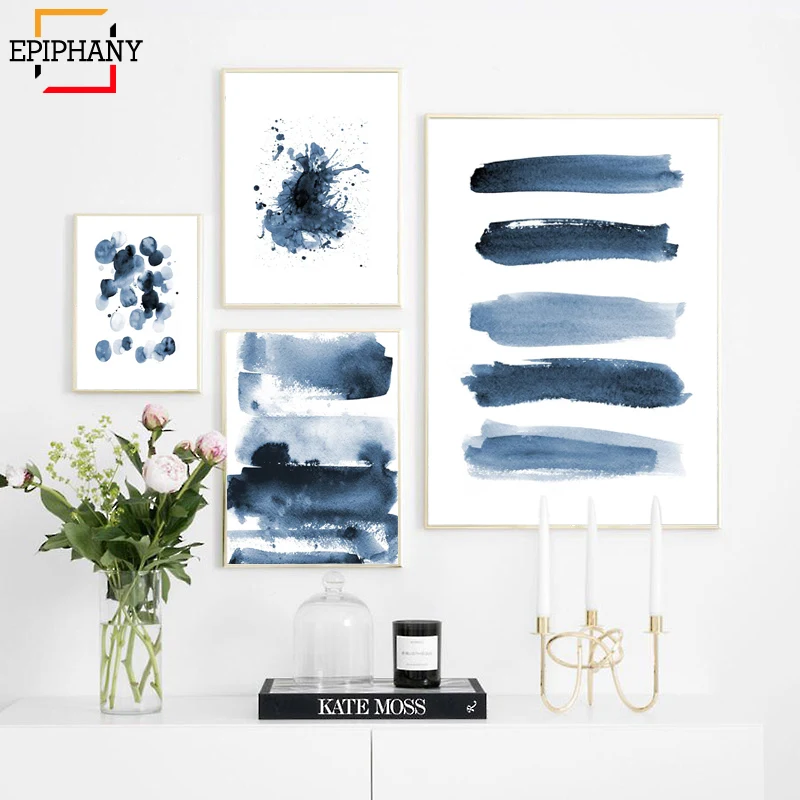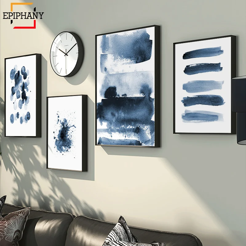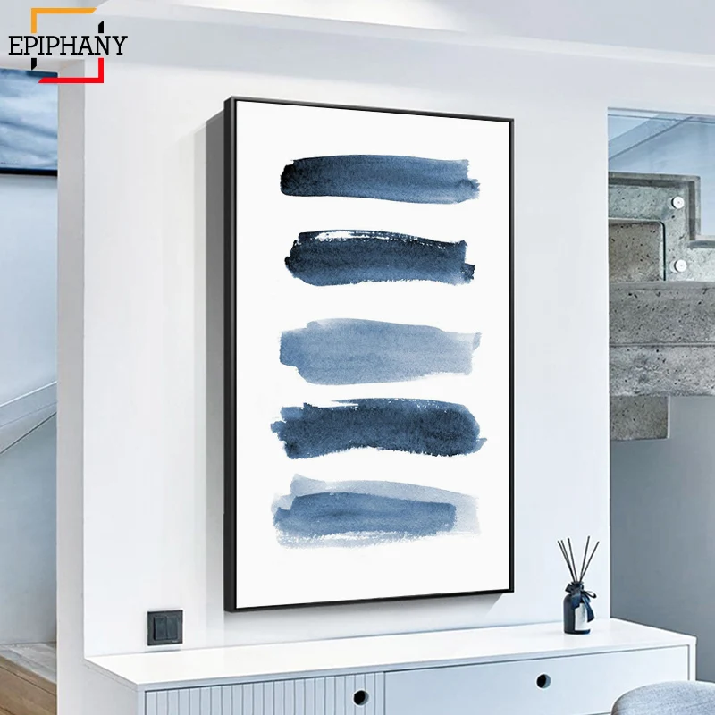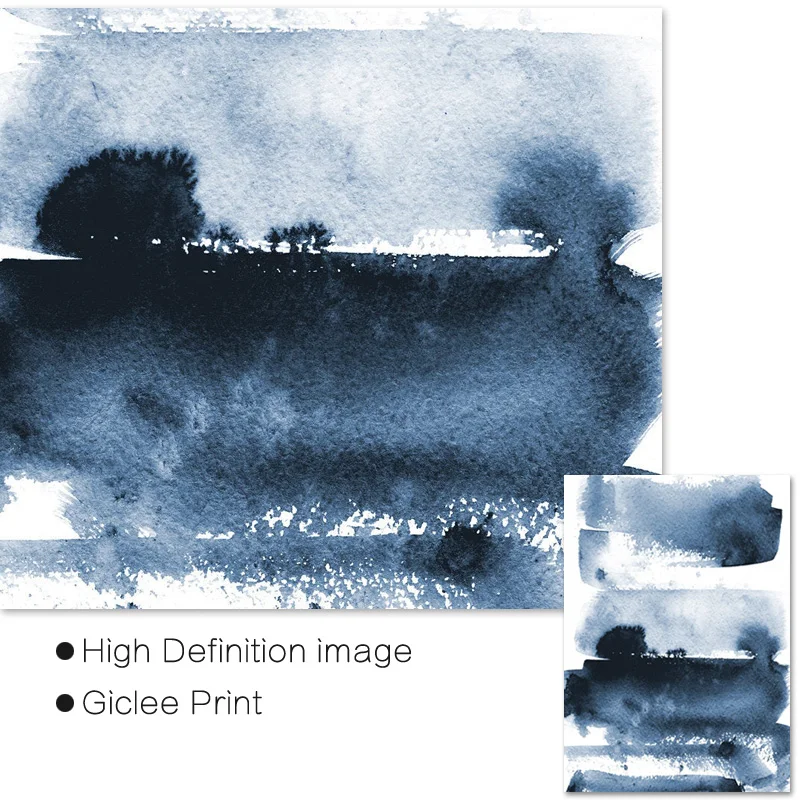 Современная Картина на холсте с голубым абстрактным принтом, большие настенные художественные плакаты индиго и синей акварелью в скандинавском стиле для гостиной, домашний декор